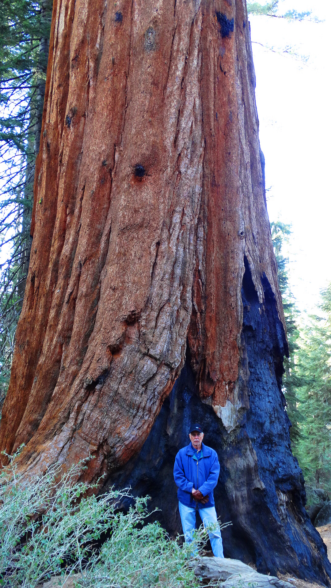 We are in the Land of the Giants, Sequoia NP, where the oldest trees are 3,200 years old, the tallest are 311 feet, and the heaviest 2.7 million pounds. Their bark can be up to 31 inches thick. Sequoia branches reach up to eight feet in diameter and their tree bases up to forty feet in diameter (Source: James D. Knoke).
