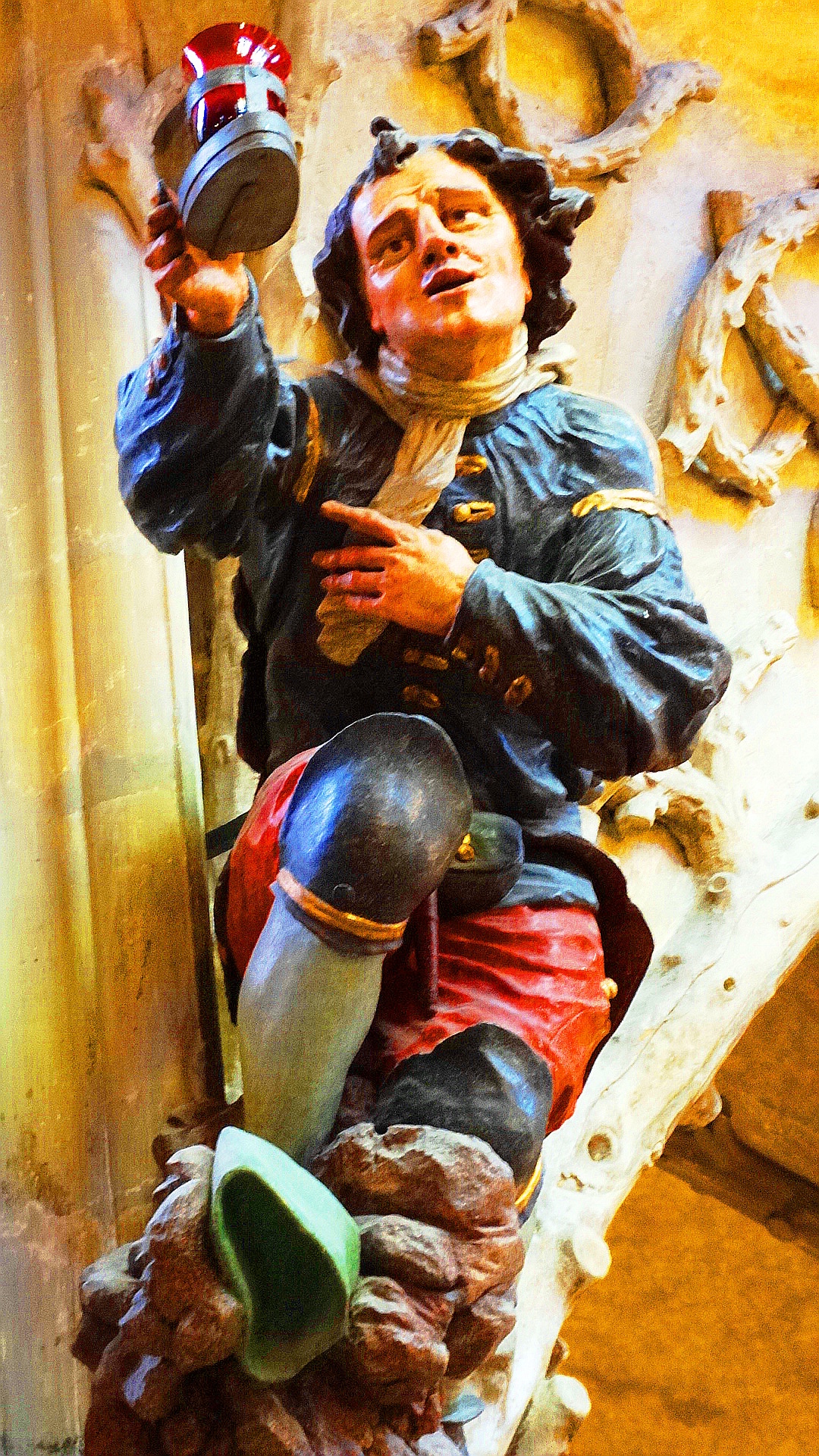 Prague Castle was founded in 870, but the actual construction dates to the 12th century. Guinness Book of World Records lists it as the largest ancient castle in the world. Like all castles it has it kinks and queens (sorry couldn’t resist) and it’s “knights in shining armor bent on chivalry.” Errrr…. except for this unhappy knight who looks like he was more bent on dodging his knightly duties. Who can blame him really? I suspect being a knight must have been over-rated, at least from the perspective of the individual knight. Seriously, who would want to be poked with one of these ghastly things. They didn’t even have antibiotics for heaven’s sake.