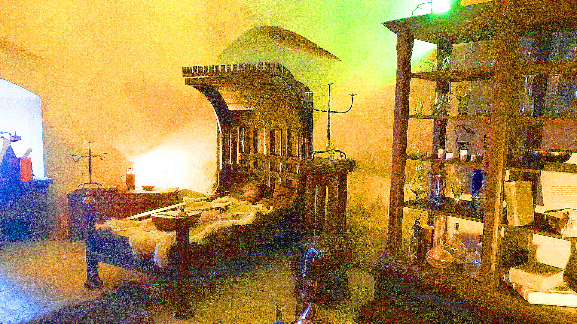 They had a mad scientist at the castle, at least I’m assuming he was mad, since the knight was sad, and the angel murderous. He may have been perfectly sane for all I know, but here are his rooms and potions and such….Maybe he was really just a kindly wizard?
