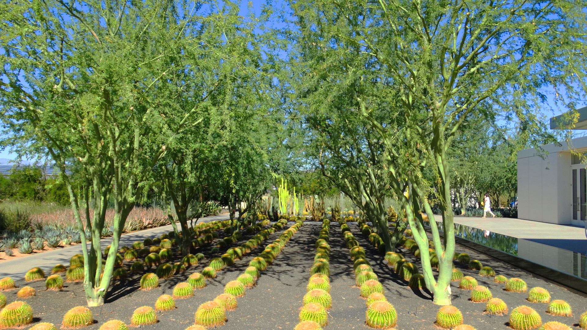 The gardens are laid out in a precise geometric grid and are completely flat. This would not be my choice for a desert garden, as I prefer the rolling, random-look, of natural desert landscapes, but the effect are sometimes striking.