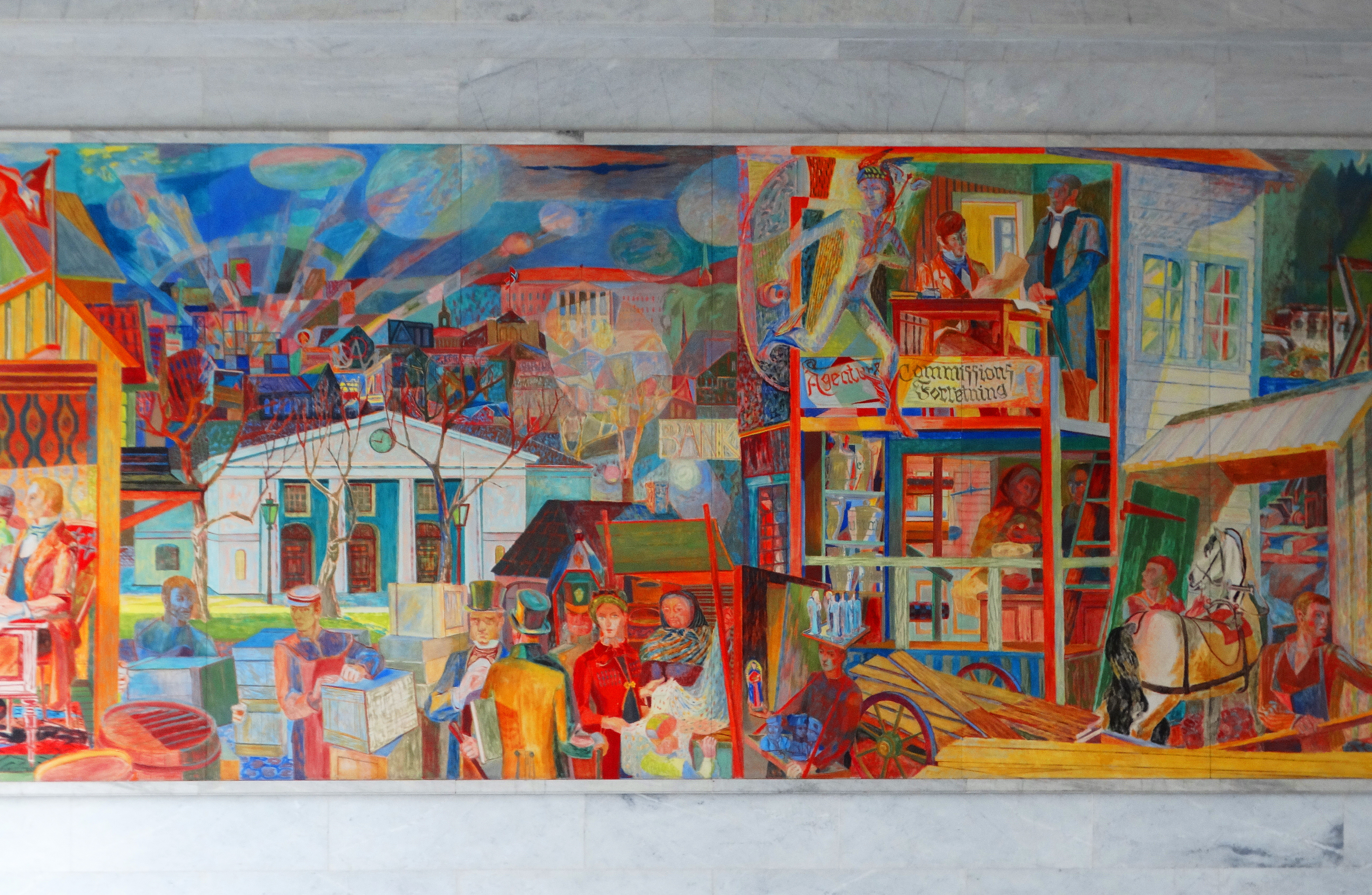 In addition to the murals, there are wood-carvings, ceramic art, and quilts.