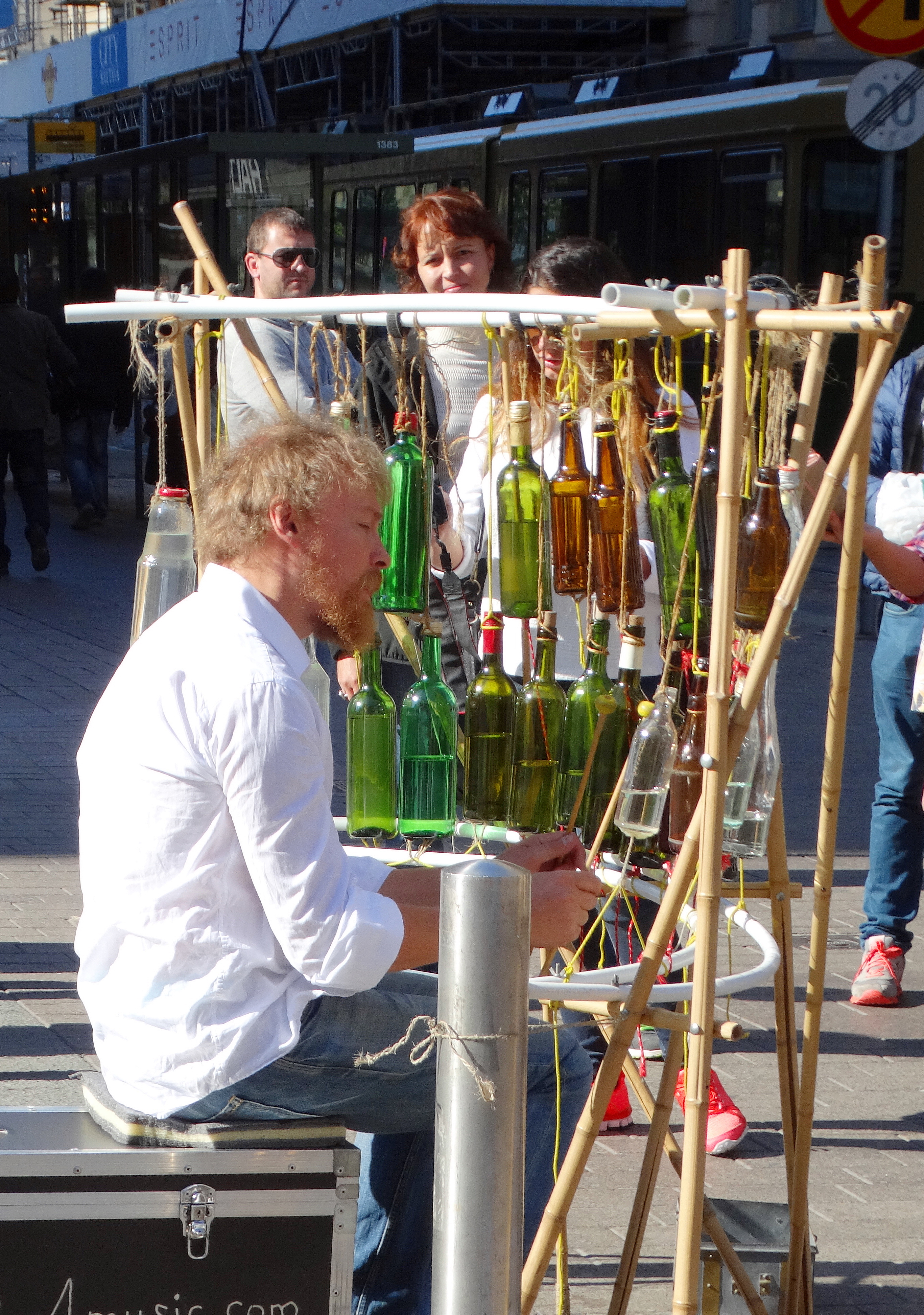 There were a lot of street artists and musicians in Helsinki. This musician made beautiful music with his wine bottles!