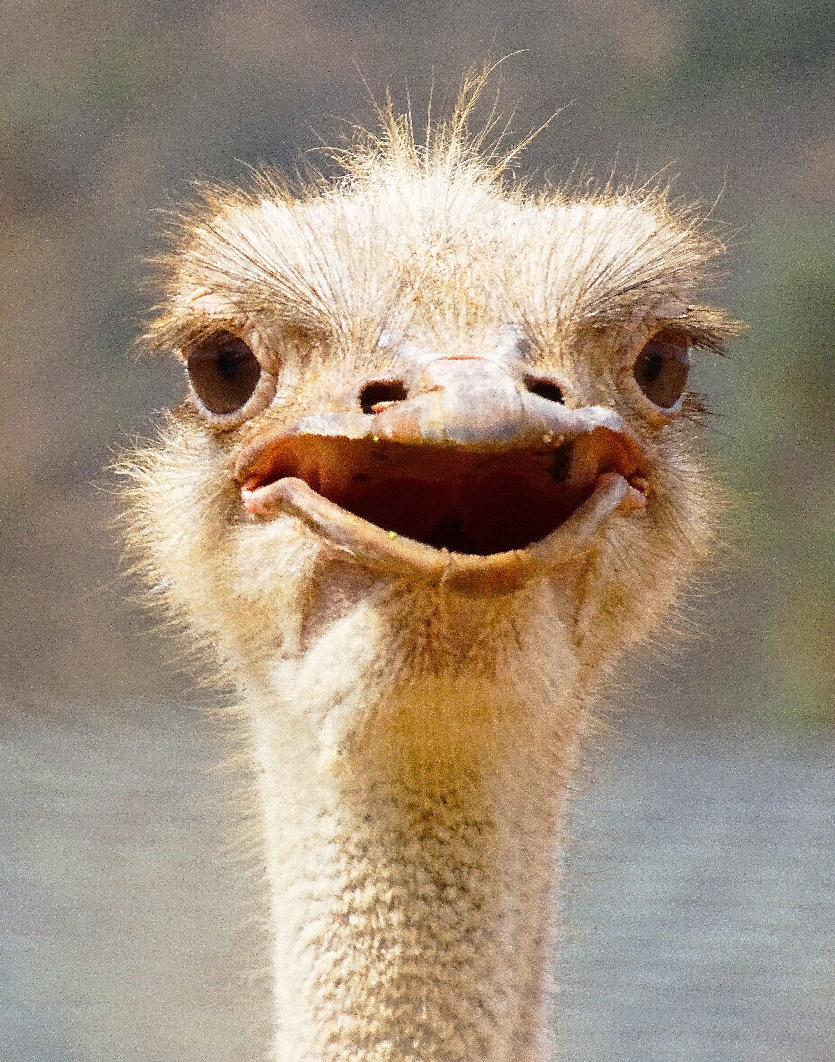 Contrary to common belief, ostrich do not hide their head in the sand when scared. Pliny the Elder just made that up around 73AD. But, as you can clearly see in this pic, they do hide their heads under their friend’s skirts. Some friends might consider this annoying, but this one seemed cool with it.