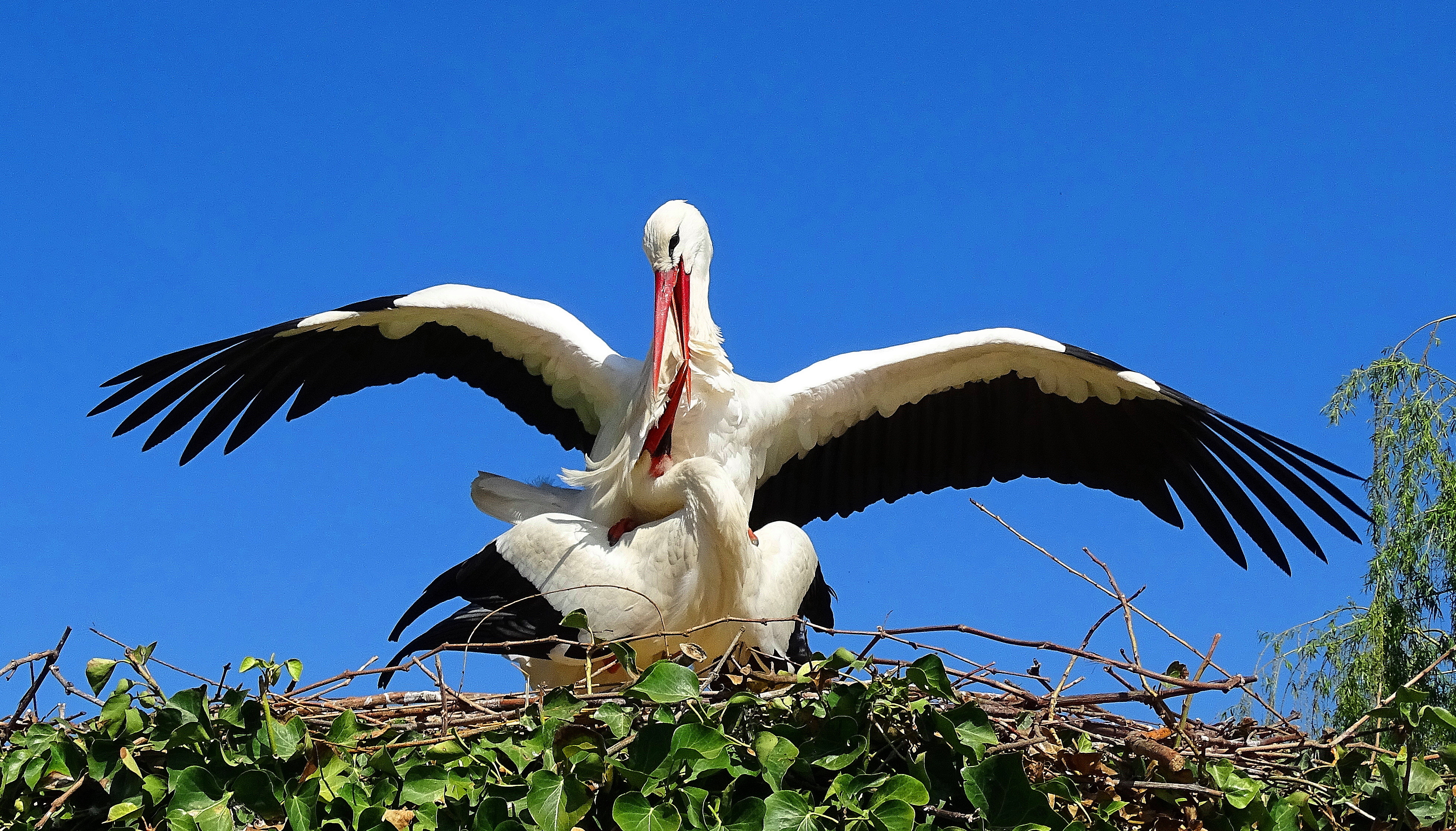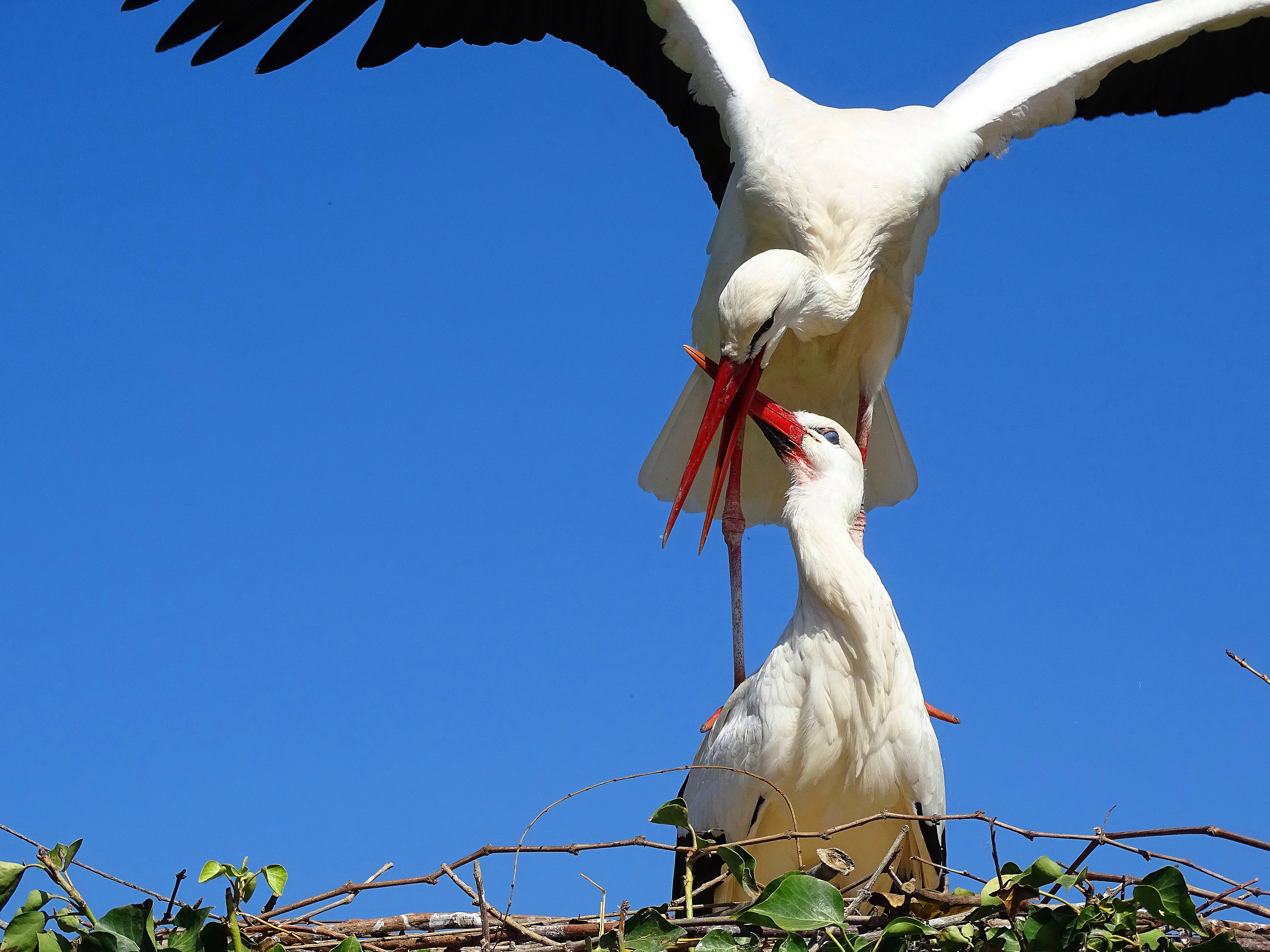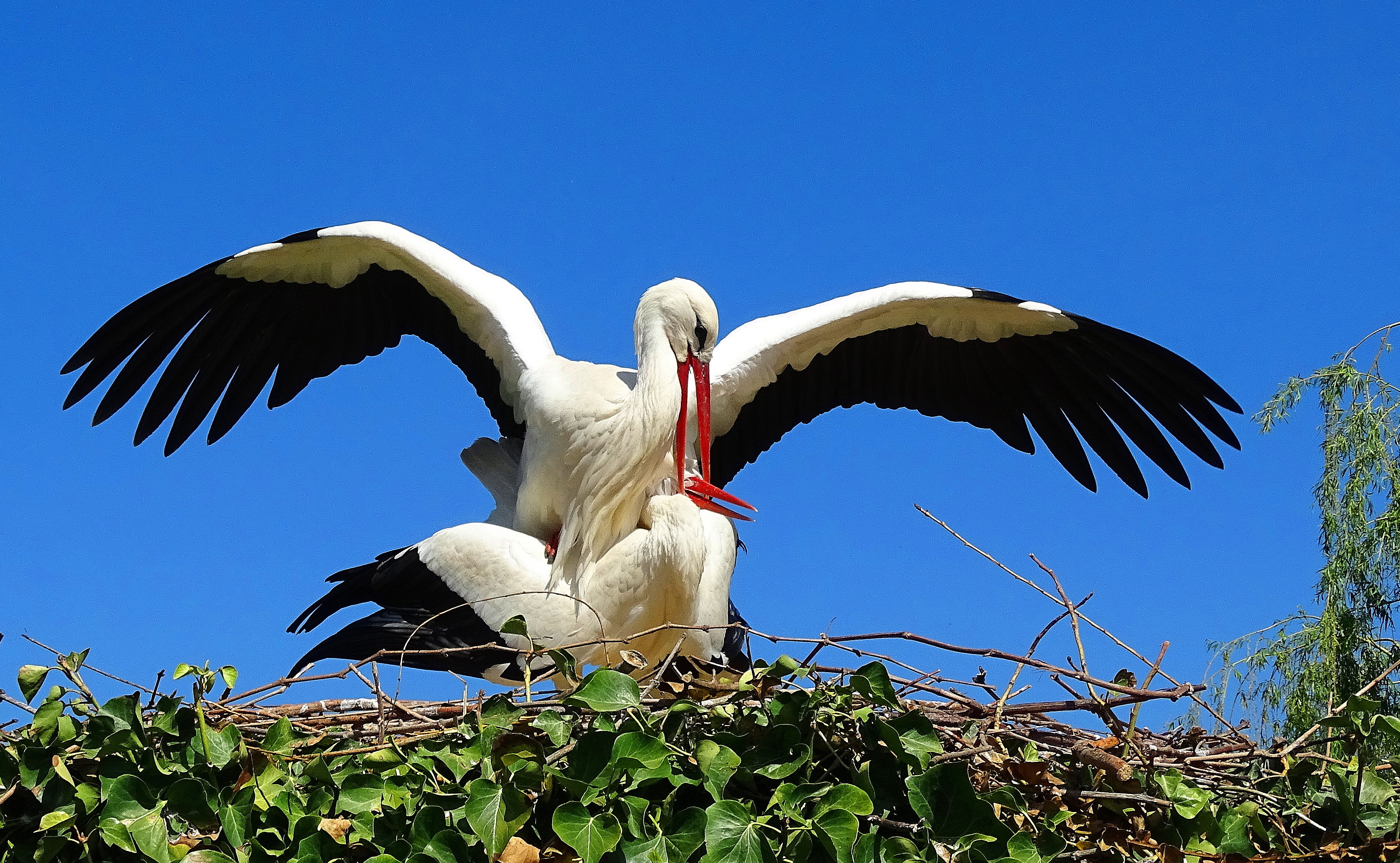 Pair of White Storks mating in Alsace France. (Click on photos to view full size).