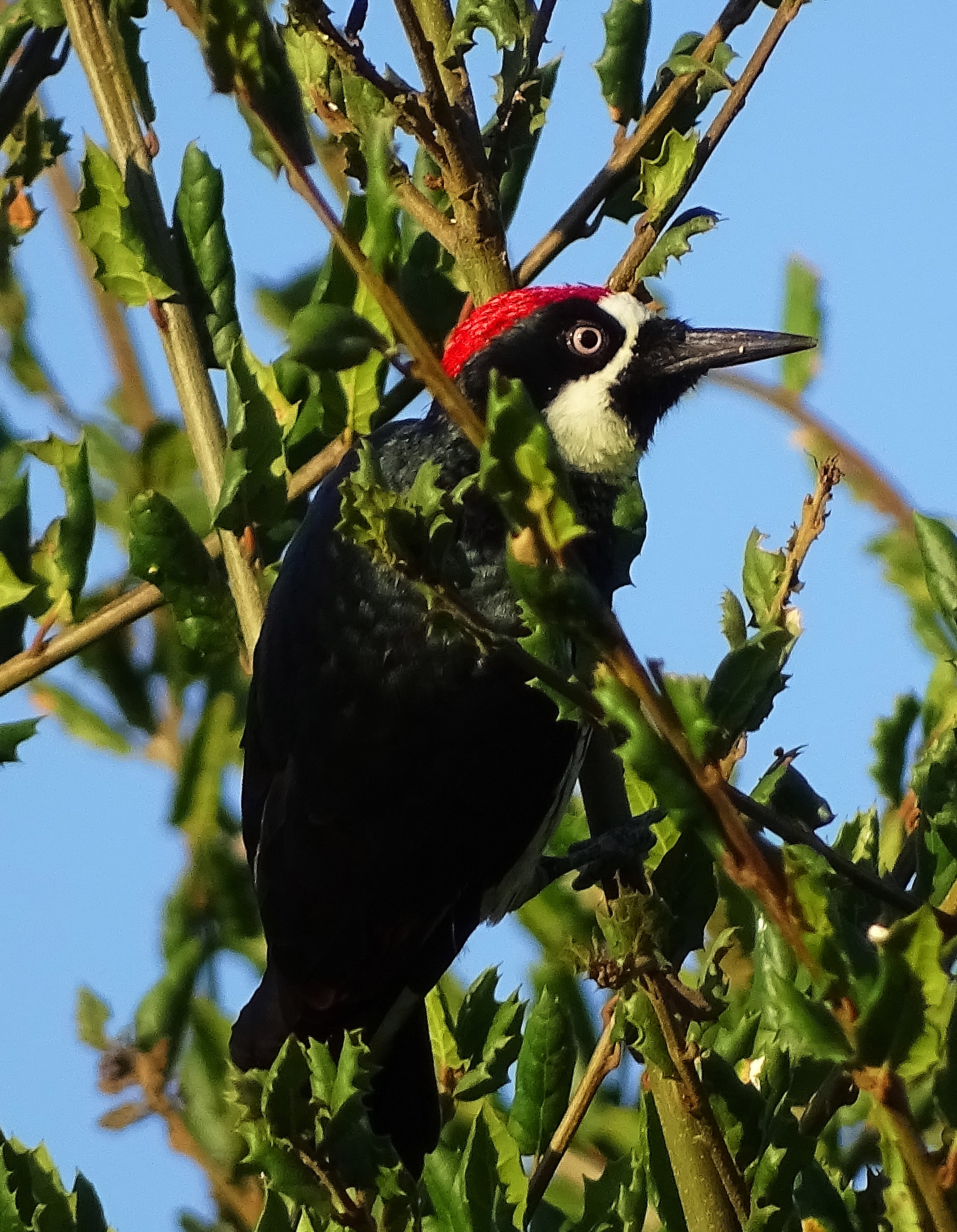 Acorn Woodpeckers are extremely shy at The Holler, and hard to capture, because they have large oak groves to select acorns from and rarely bother to visit the feeders.