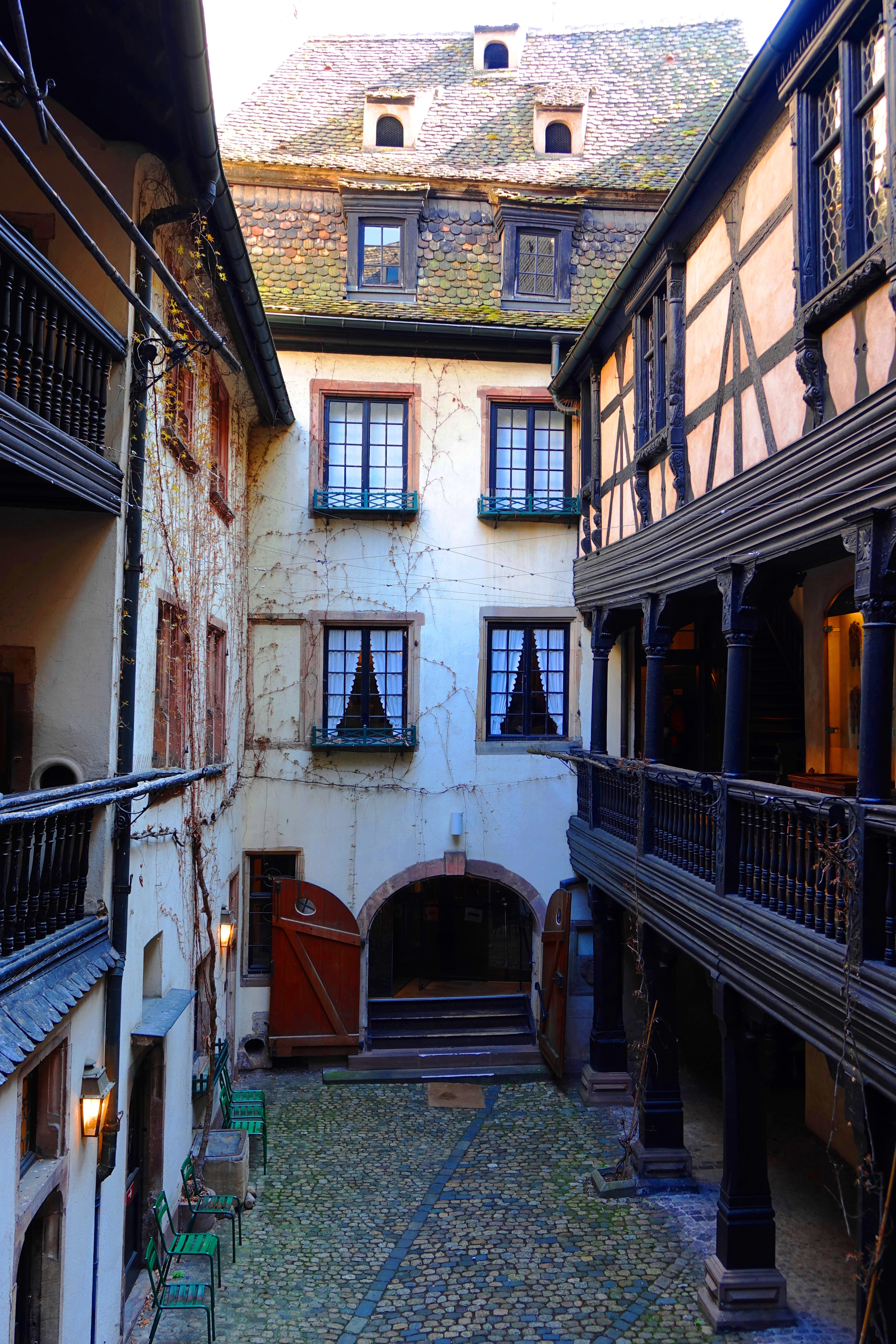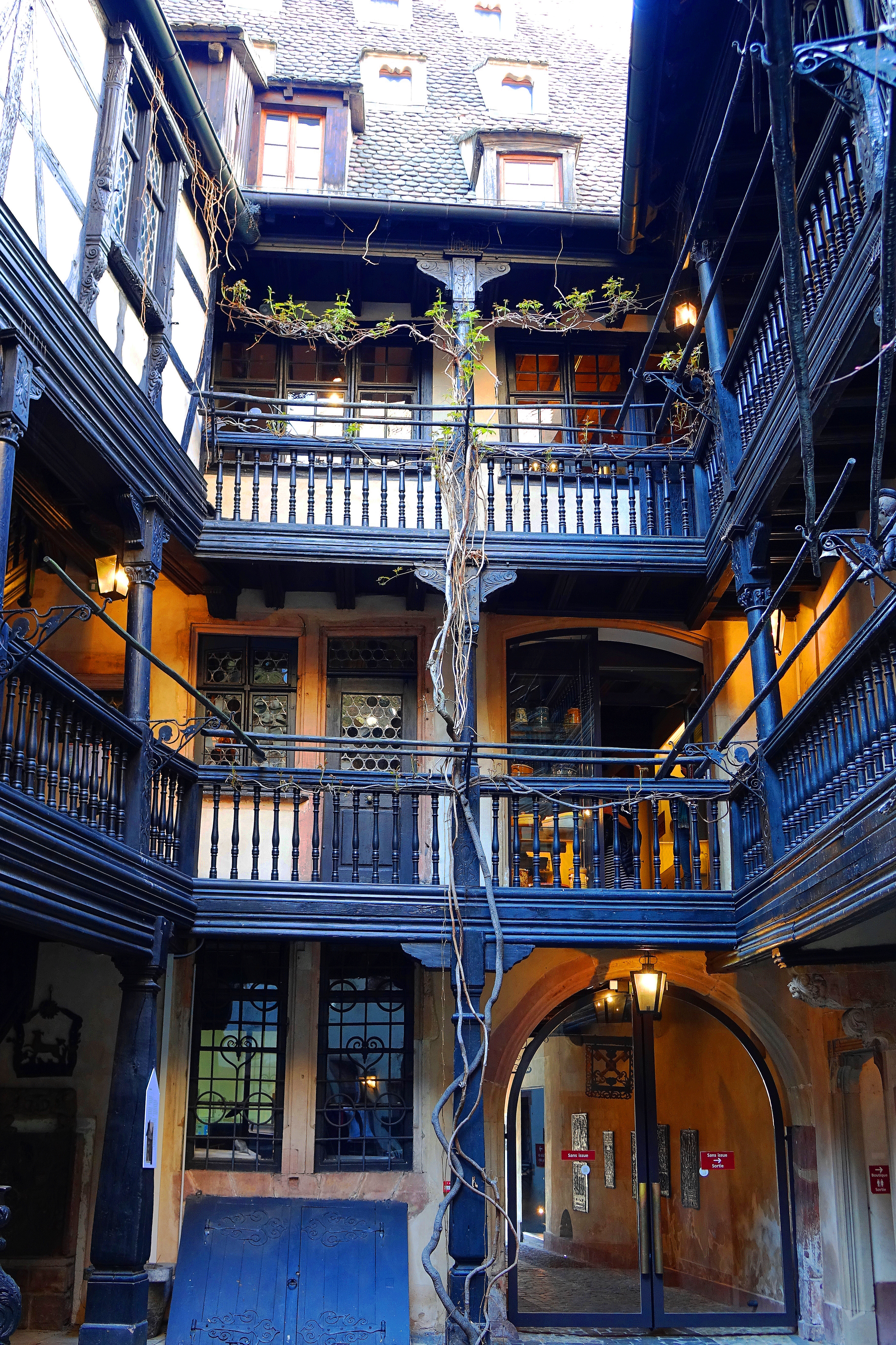 What a wonderful place! My ancestor is possibly from Alsace-Lorraine, named Andree, and I’ve always wondered about that place. I love the flour spouts, especially that the women’s had bigger mouths. LOL And that vine, growing up the courtyard. I’ve always wanted a courtyard. 🙂