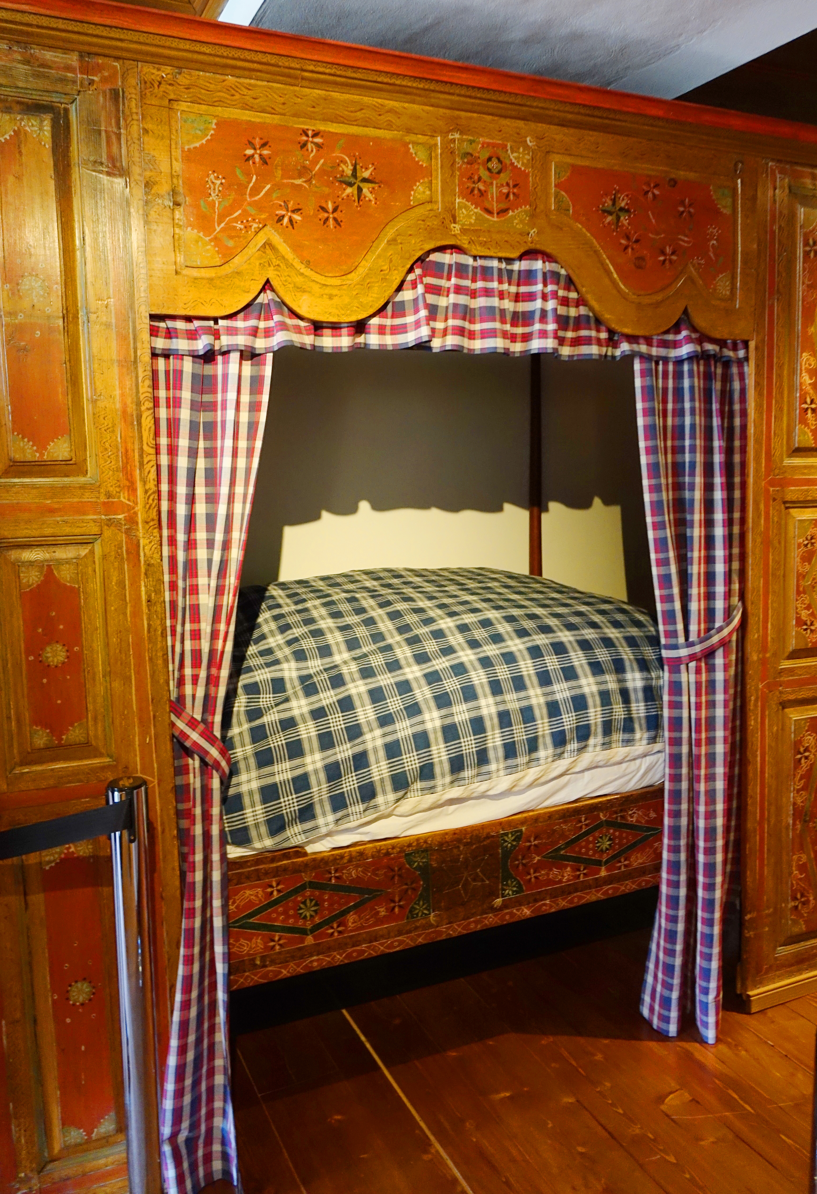 Hand carved and painted woodwork is especially charming as you see in this very cozy bed.
