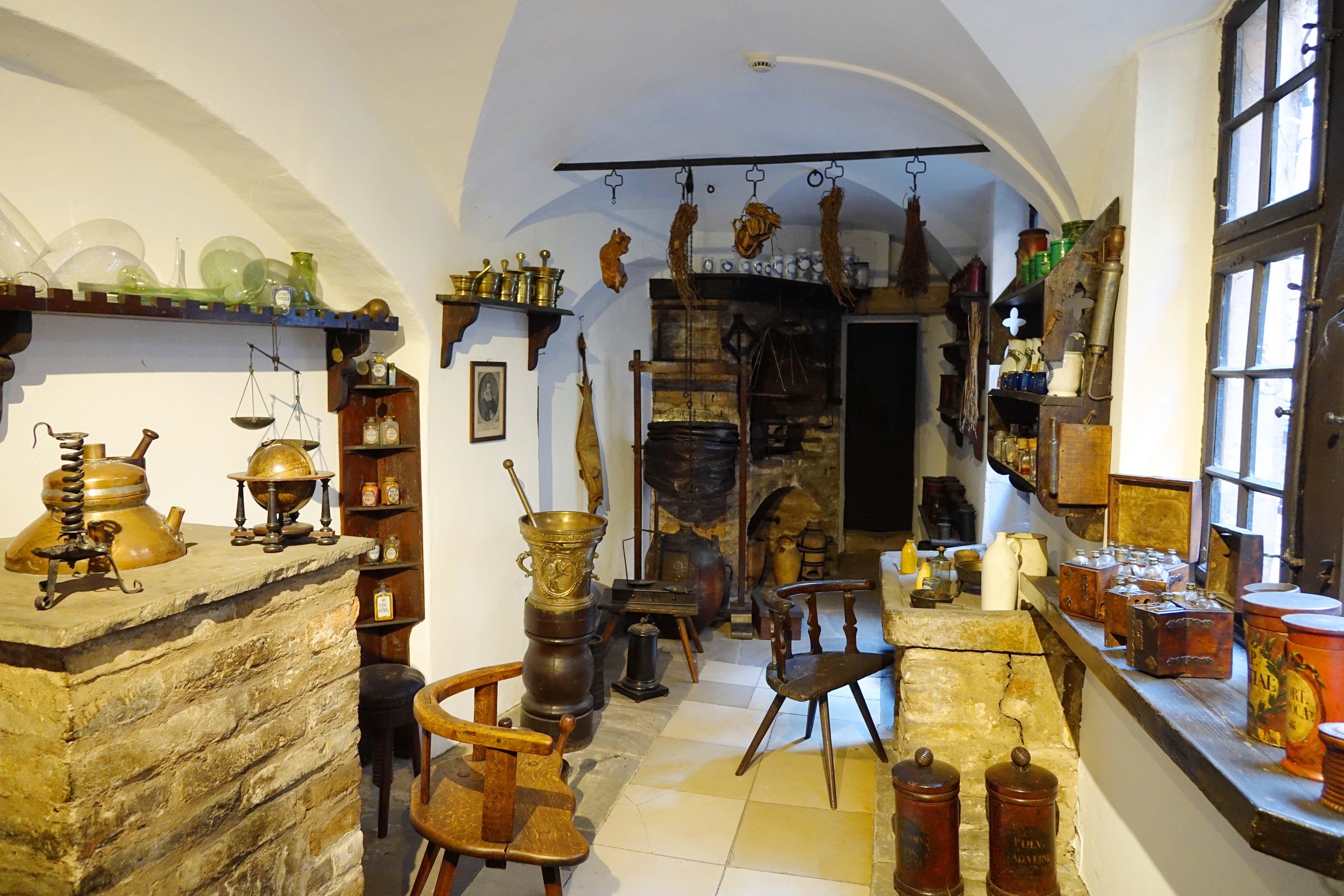 Many homes of this era contained family businesses like this old pharmacy.
