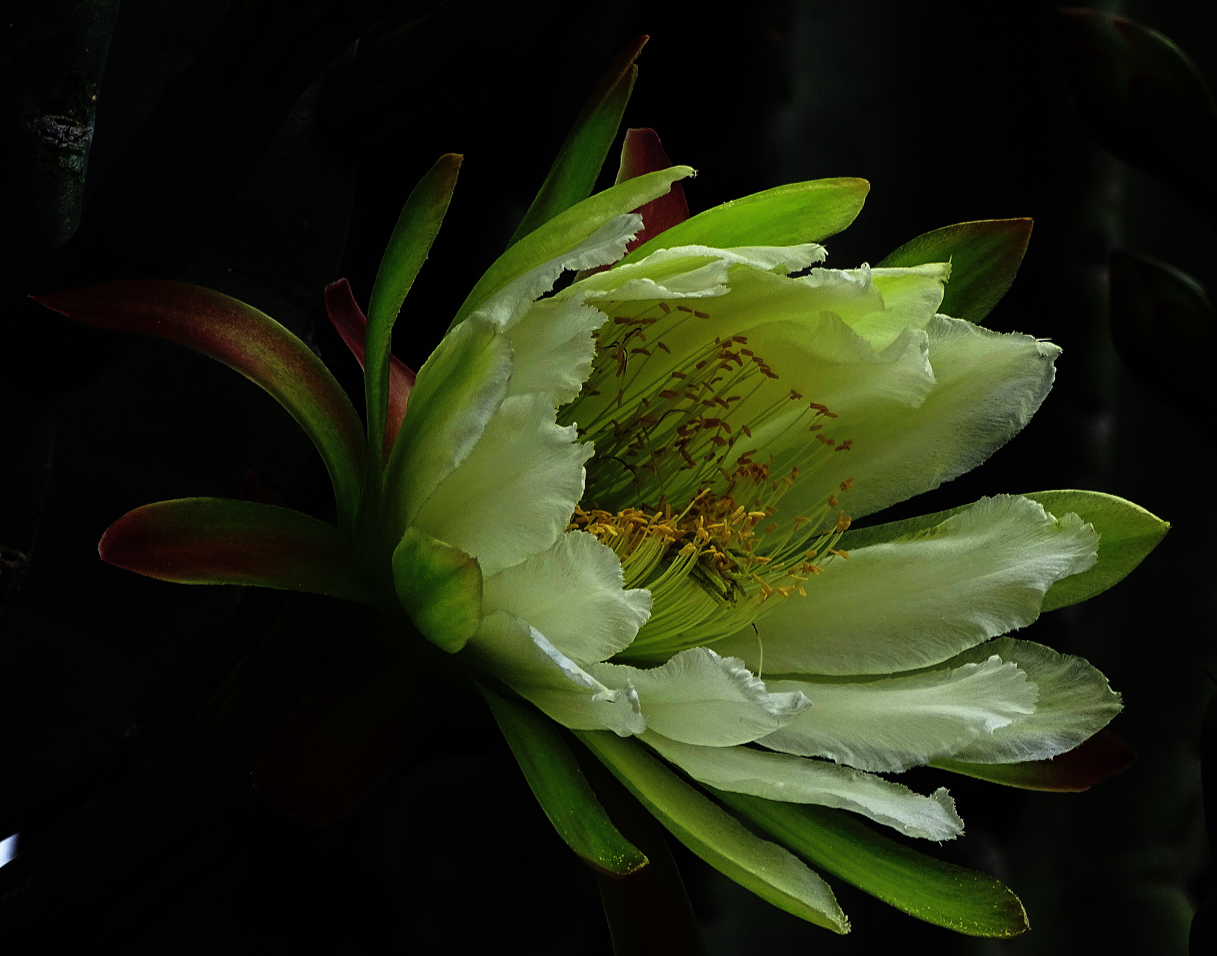 These Night Blooming Cereus flowers were taken with my older, trusty HX400, which is still my go to bird and wildlife camera. The flowers grow on the tallest cactus in the world, Cereus Peruvians. Ours is over 30 feet tall! It’s flowers are as big as plates and open only at night. The tree generates tons of fruit called Peruvian Apples that are crunchy, sweet, and delicious!