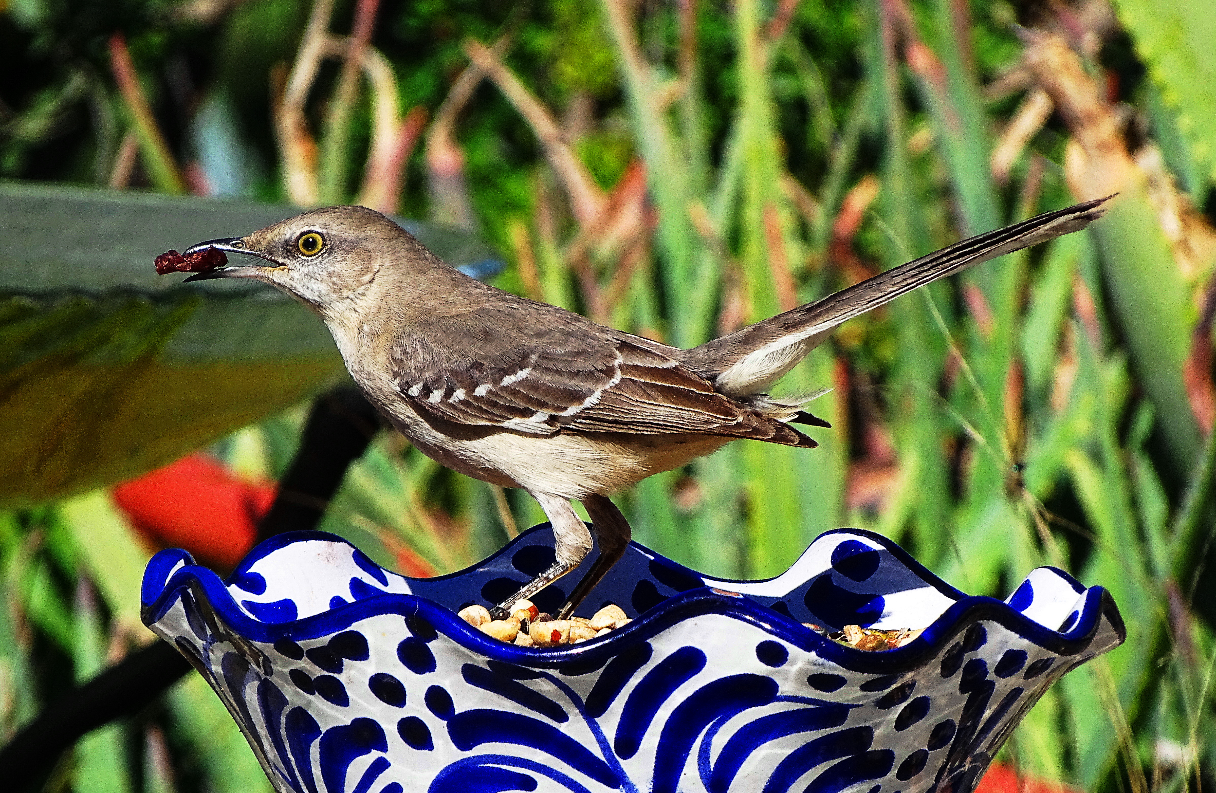 You may see Flash the hummer in this photo flying close to observe the predator-prey interaction. Flash lives with us year round and some of you may remember Flash. I have lots of talks with him about staying away from large predator birds like Meep-meep and Big-Bob who like to eat hummers, but as I mentioned before, birds don’t listen to humans, so you can see Flash buzzing Big-Bob like nobody’s business.