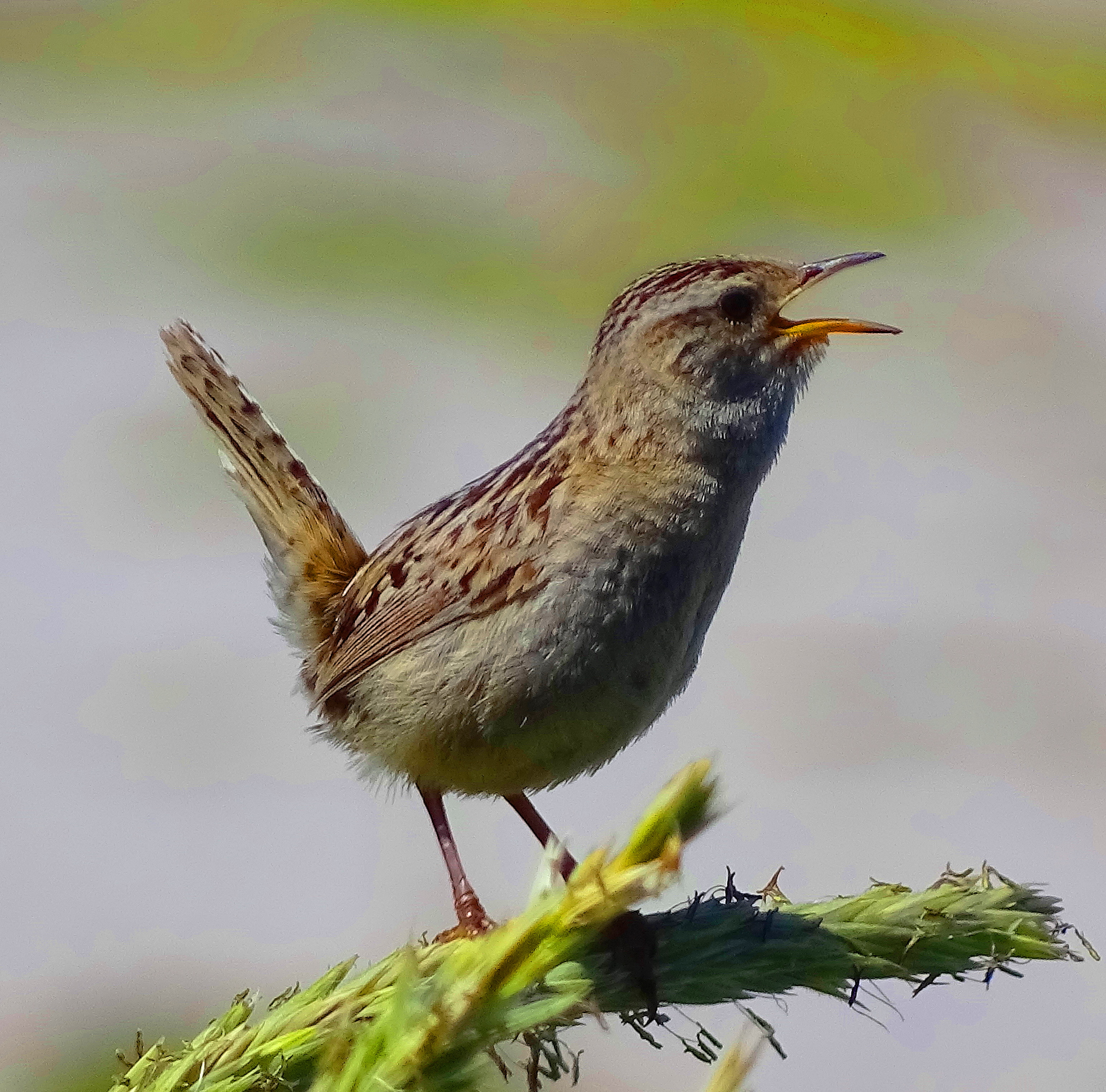 This cutey is a Grass Wren, known as a Sage Wren in North America. He sings beautifully and was photographed in The Falkland Islands.