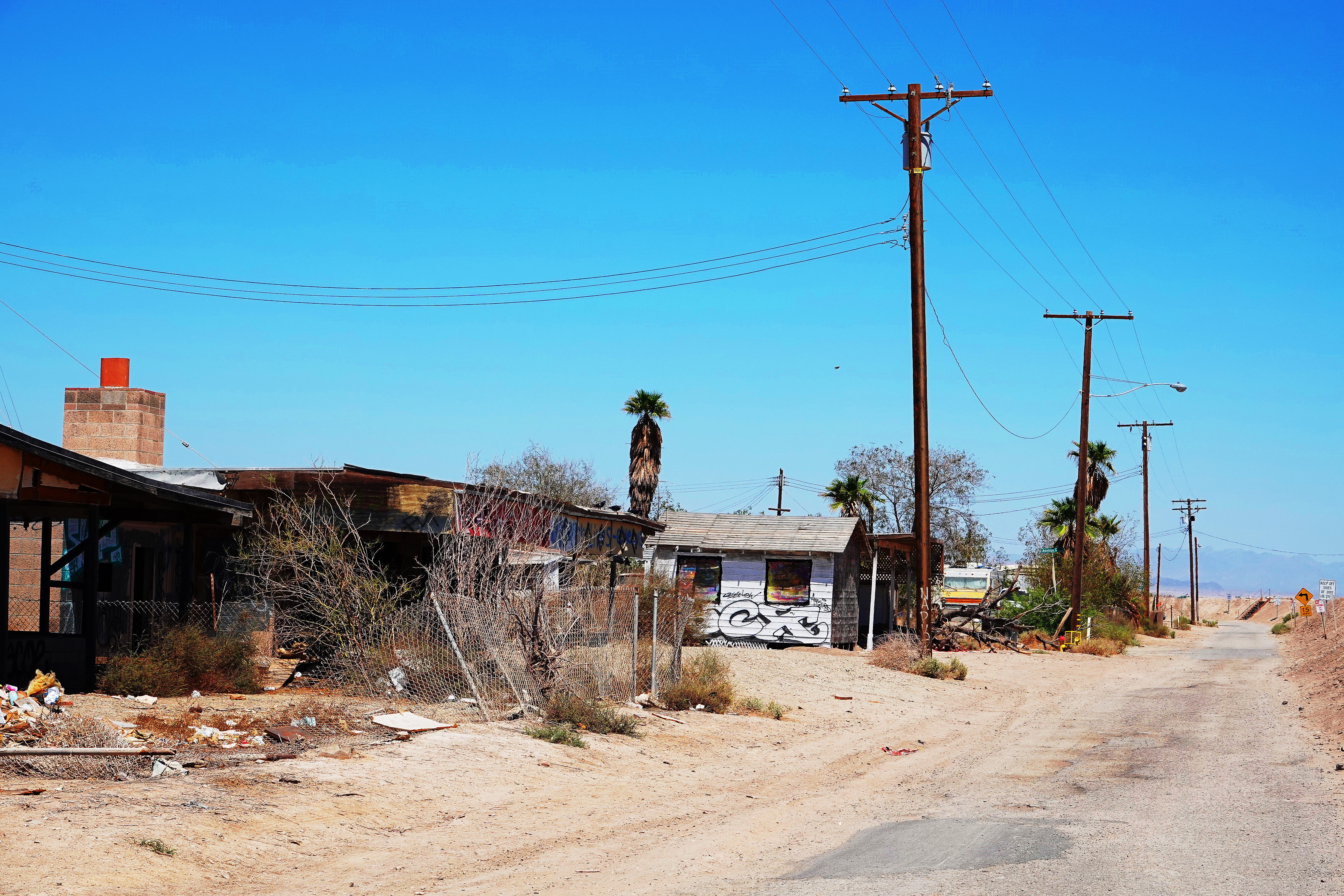 There are restaurants and stores in nearby communities. There are different cities like Bombay City around The Salton Sea, including a place called The Slabs. Since the sea is so large, people living at different geographical parts of the sea will access different communities. They need access to a vehicle to do this.