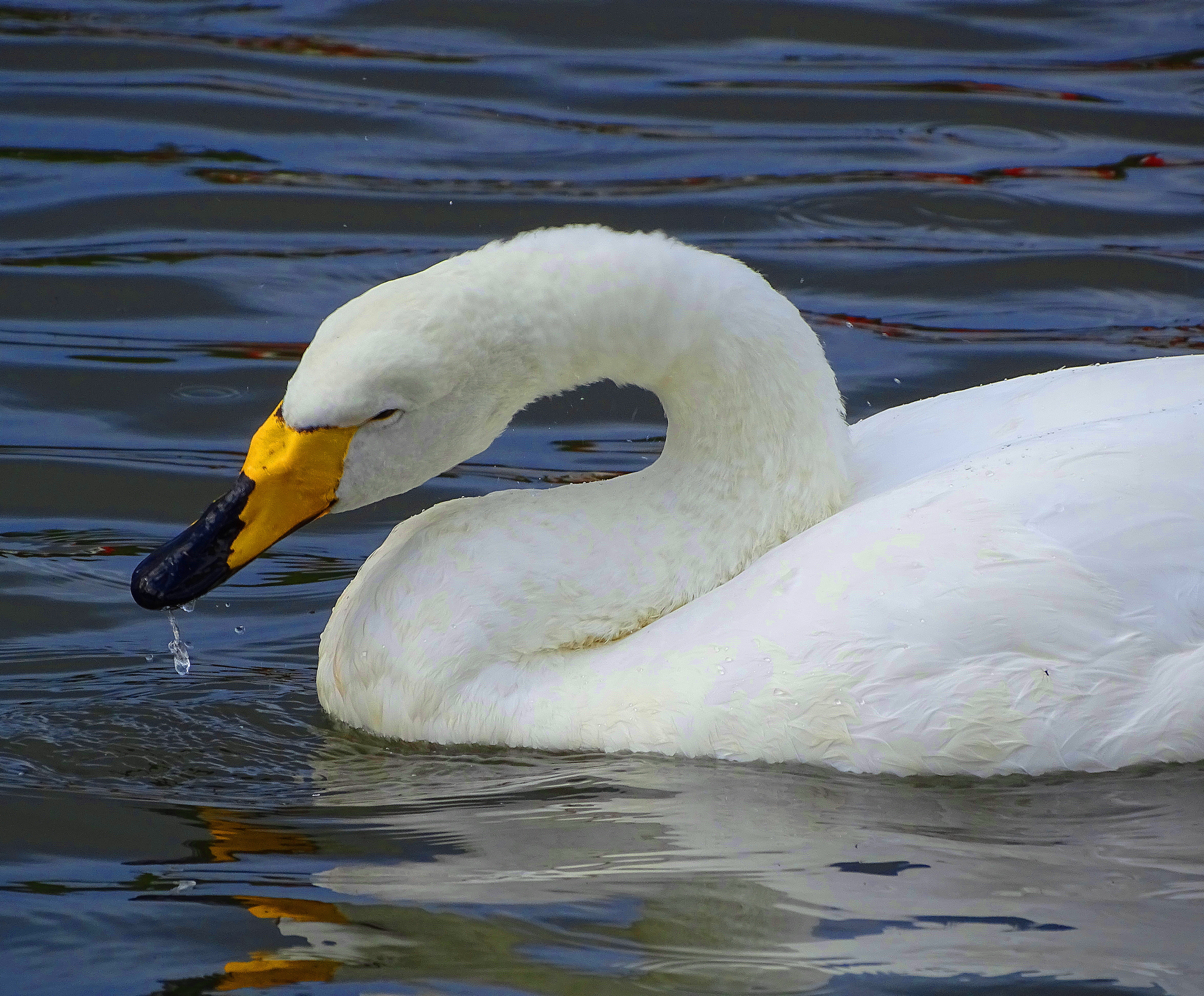 They breed all over Iceland, and some overwinter in the thermally heated parts of Lake Myvatn. Interestingly, their North American Trumpeter Swan cousins do the same thing, spending winter in the thermally heated parts of the Yellowstone River.