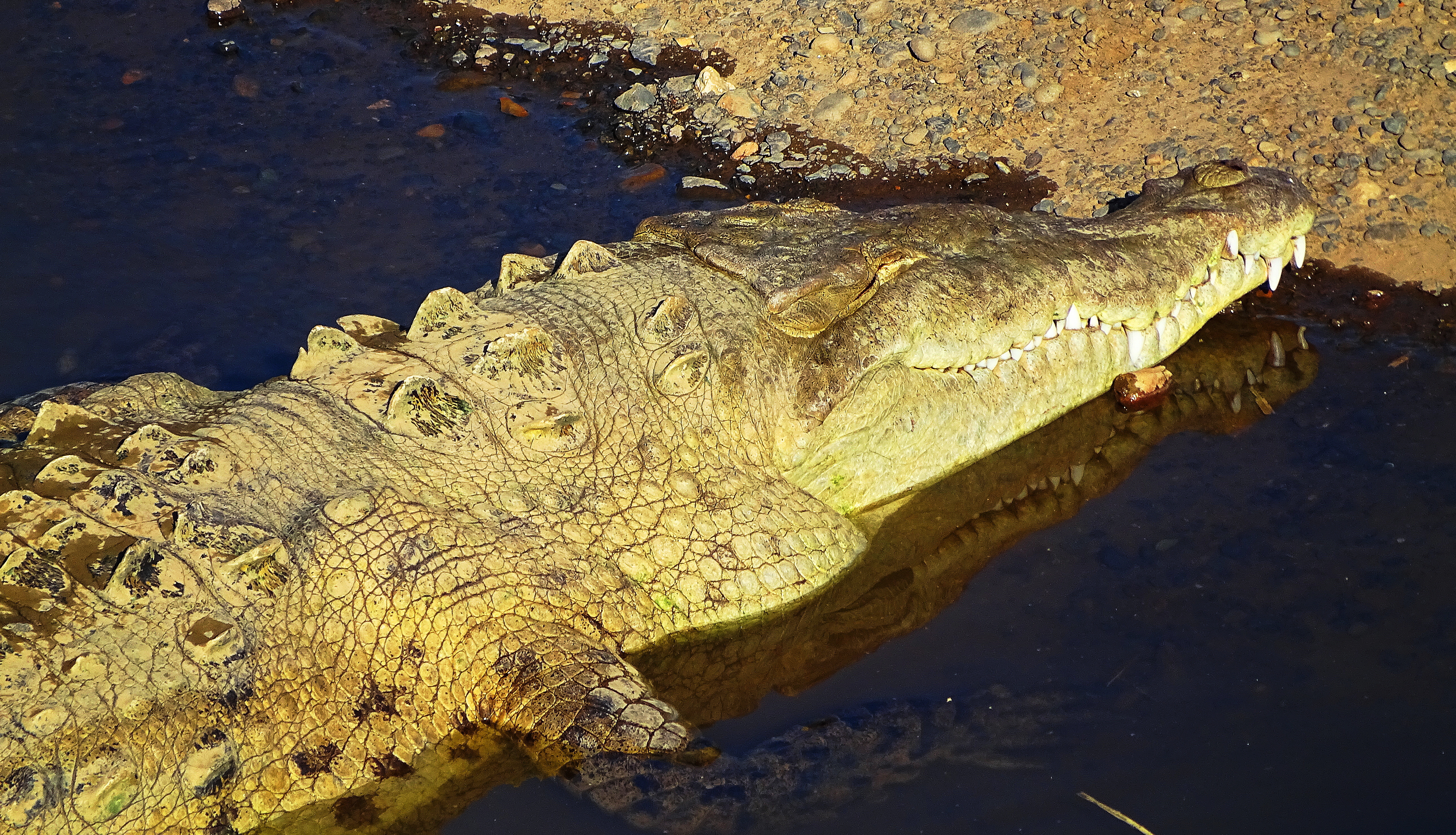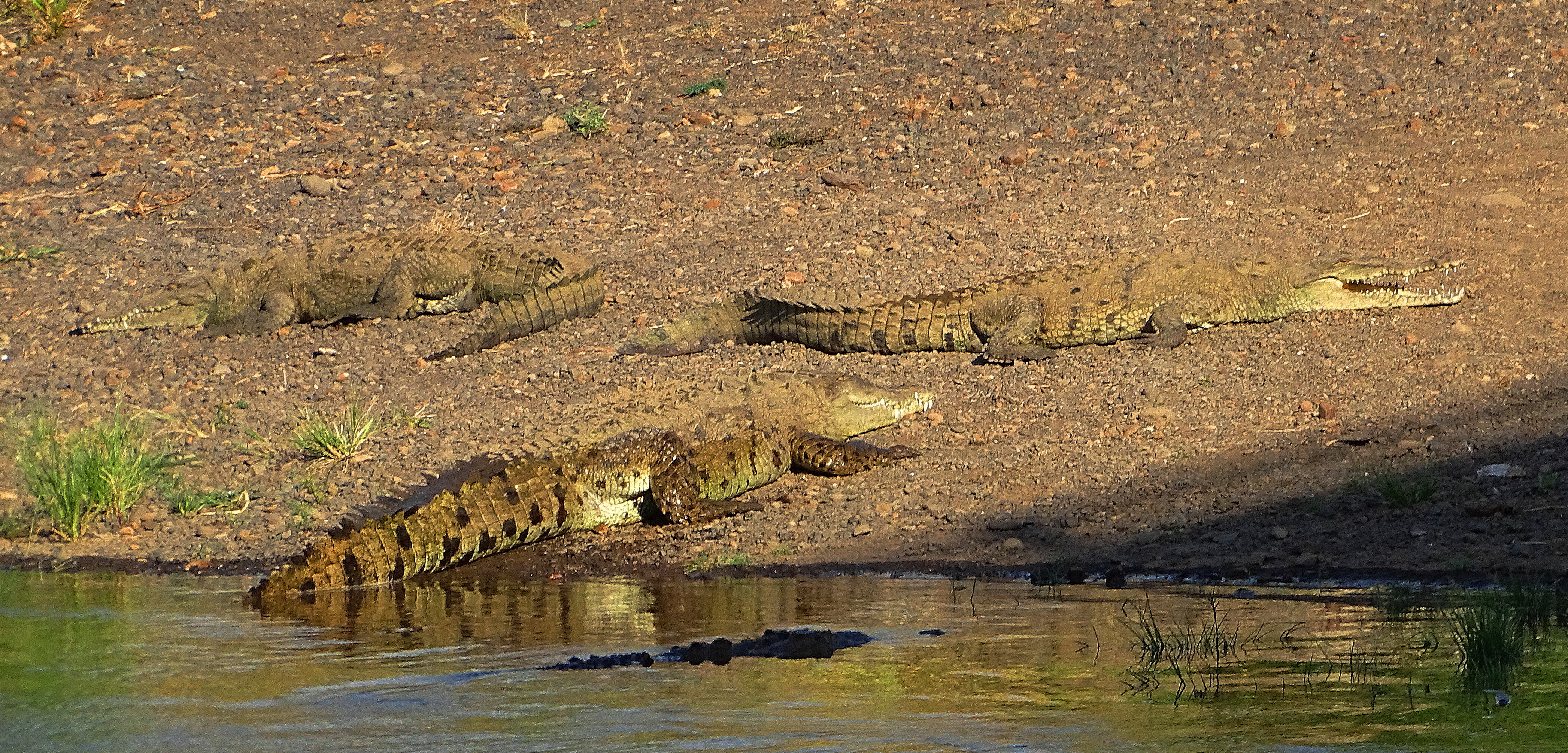 that one fails to notice the crocodiles, which is actually quite easy to do, since they are so well camouflaged. Do you see them here? Looking like logs in the river?
