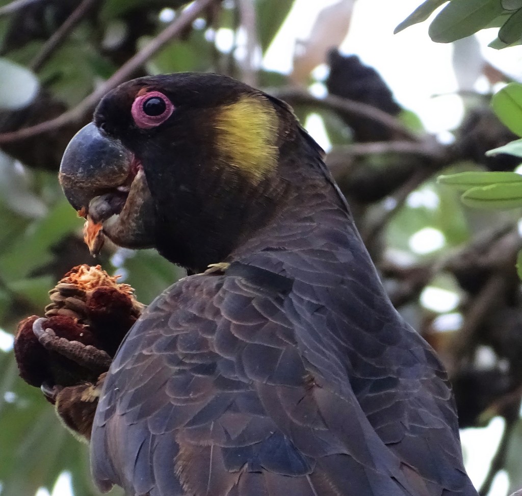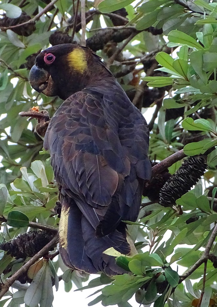 I had seen Yellow Tailed Black Cockatoos here eleven years ago, but was packing my suitcase, resigned to not having a repeat experience, when I spied this one out my window.