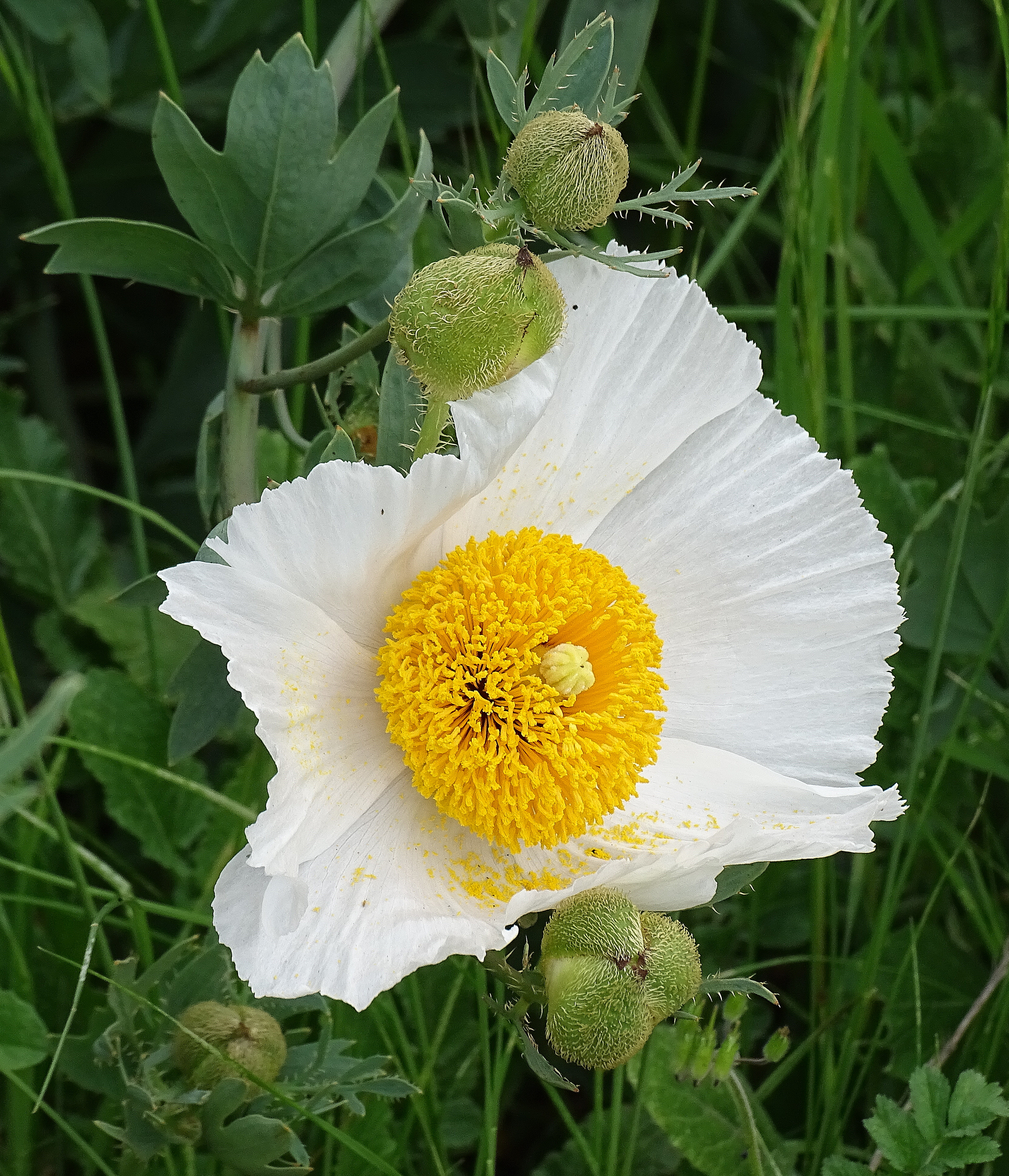 Matilija Poppies are one of my favorite flowers and are Southern California natives, with huge fried-egg blossoms, about eight inches in diameter.