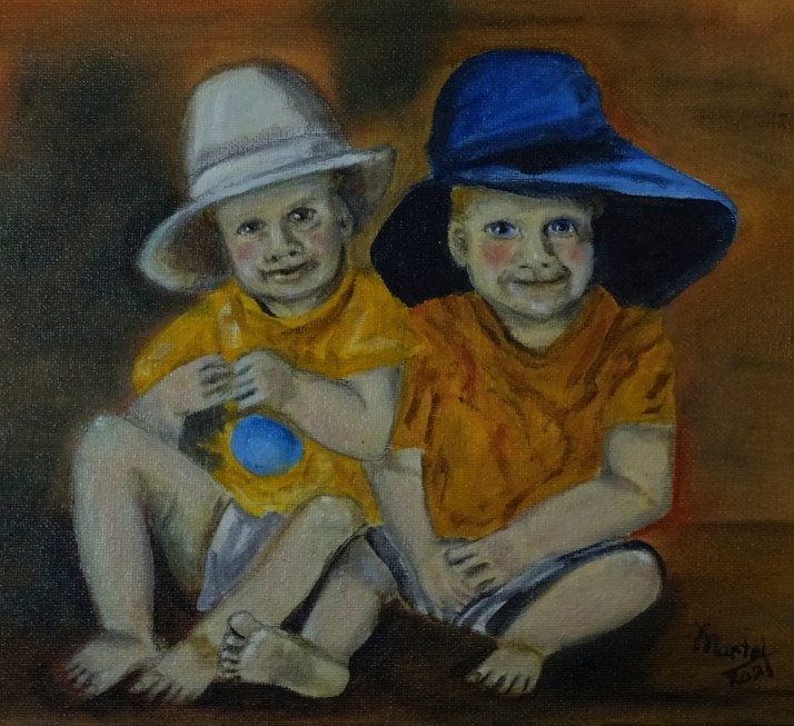 Leslie saw them and felt called to paint the twins because they reminded her of her sons at this stage, who were close in age and used to crawl into each others cribs. Here is a post about Leslie:
