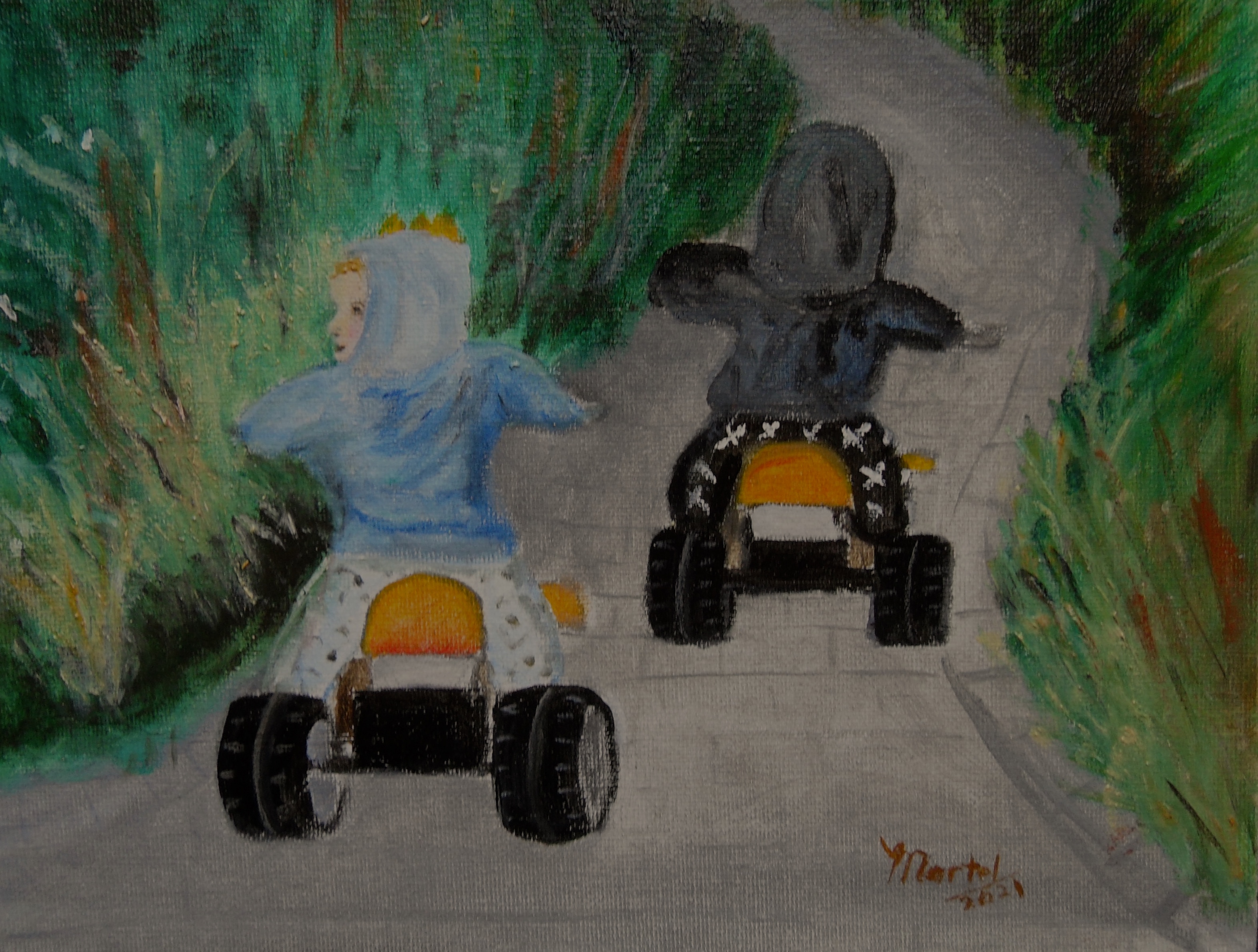 Look what I received in the mail from my blogging friend Leslie. She painted this and did a post about it which you can see here: https://swo8.wordpress.com/2021/03/10/the-go-go-boys-by-l-martel/