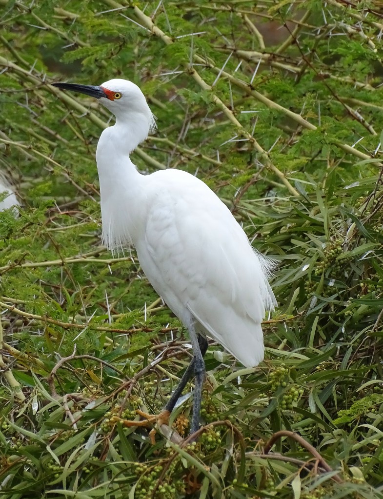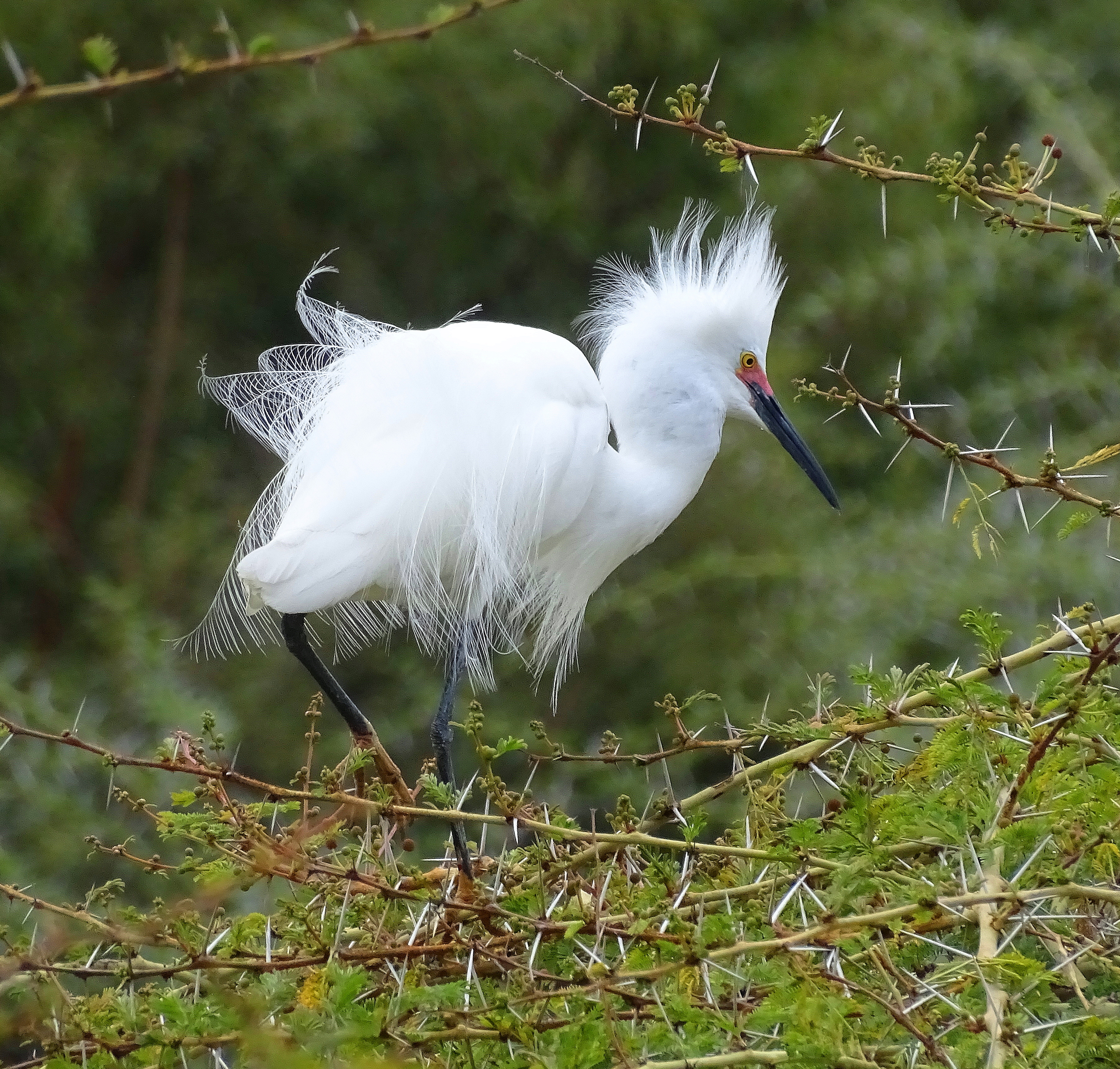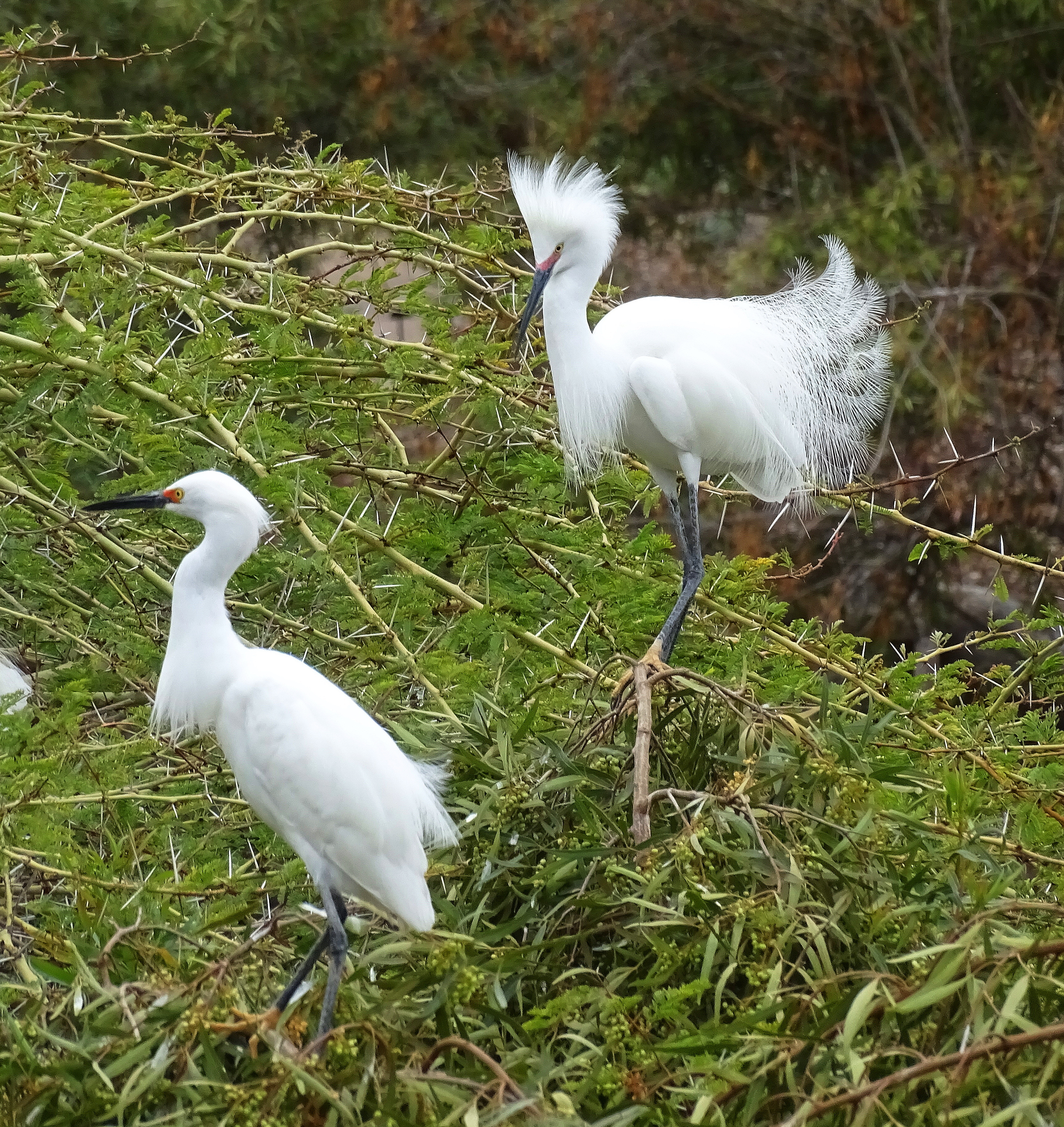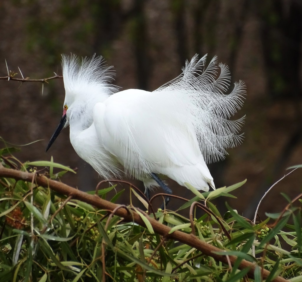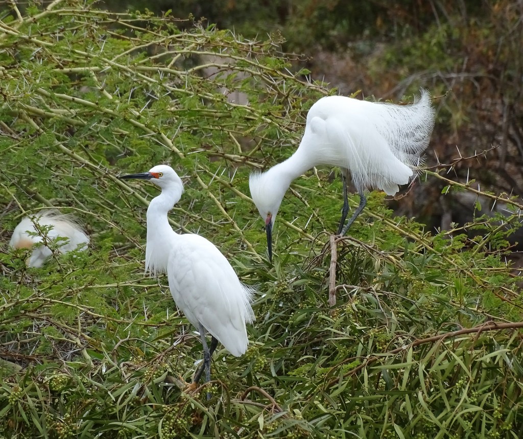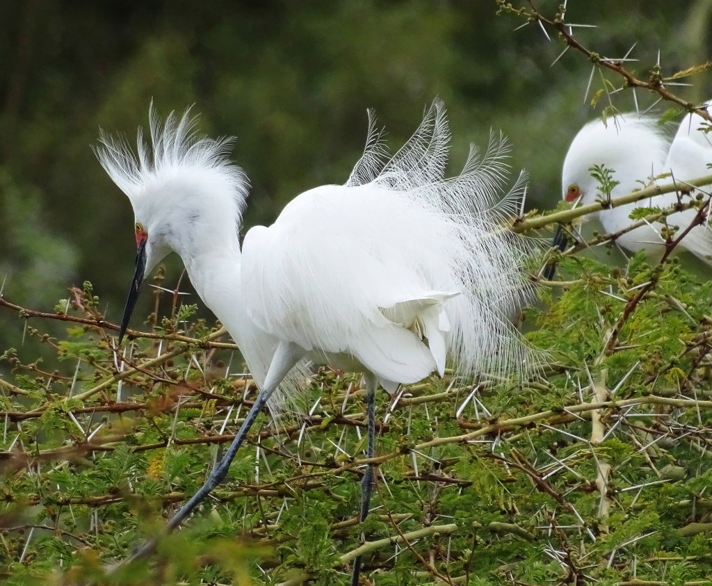 Egrets dance, sing, and nest, on trees with formidable thorns, to keep less talented predators away.
