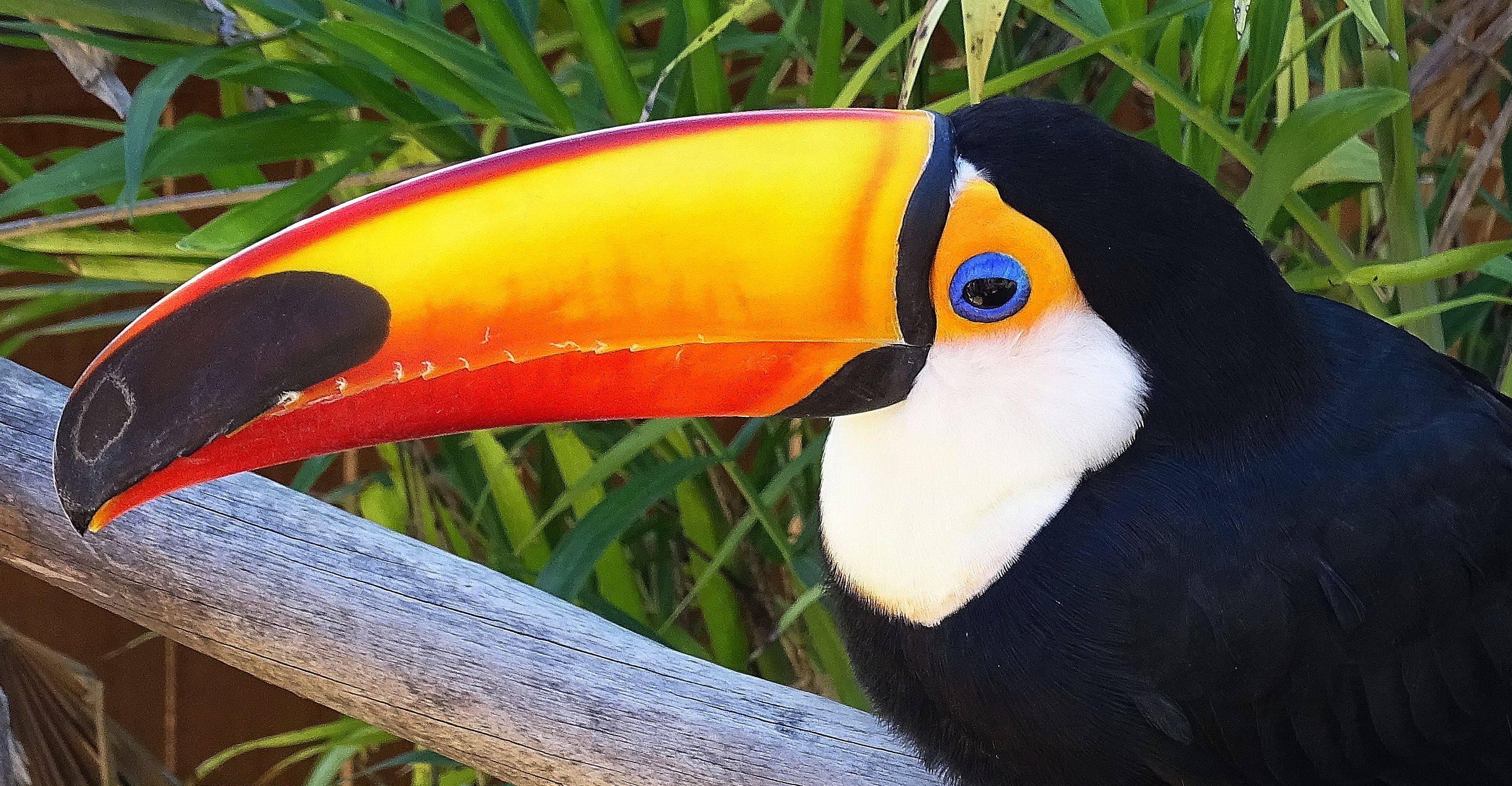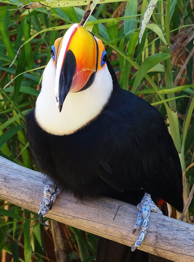 Note: This is a Toco Toucan. They are highly intelligent birds and are the largest and longest living toucans. They can live up to thirty years. Many types of toucans are endangered in the wild due to habitat destruction and hunting, but Toco populations are currently stable.