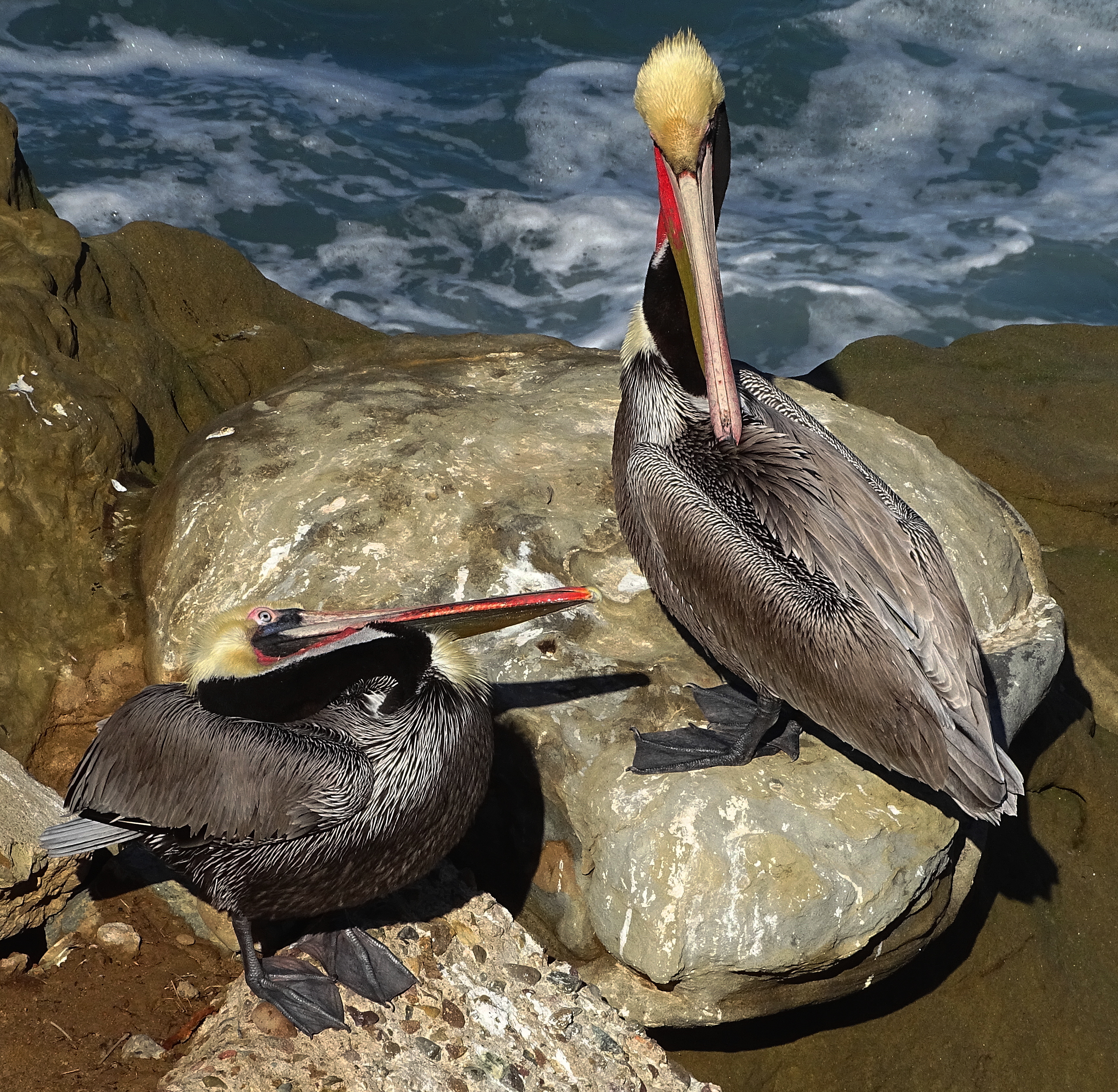Clever you! I found myself imaging a Disney-like voice emitting from them. They have such small eyes in relation to that fish-catching beak. Great pics, Cindy.