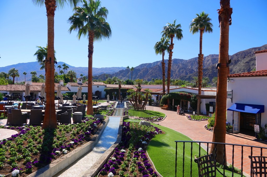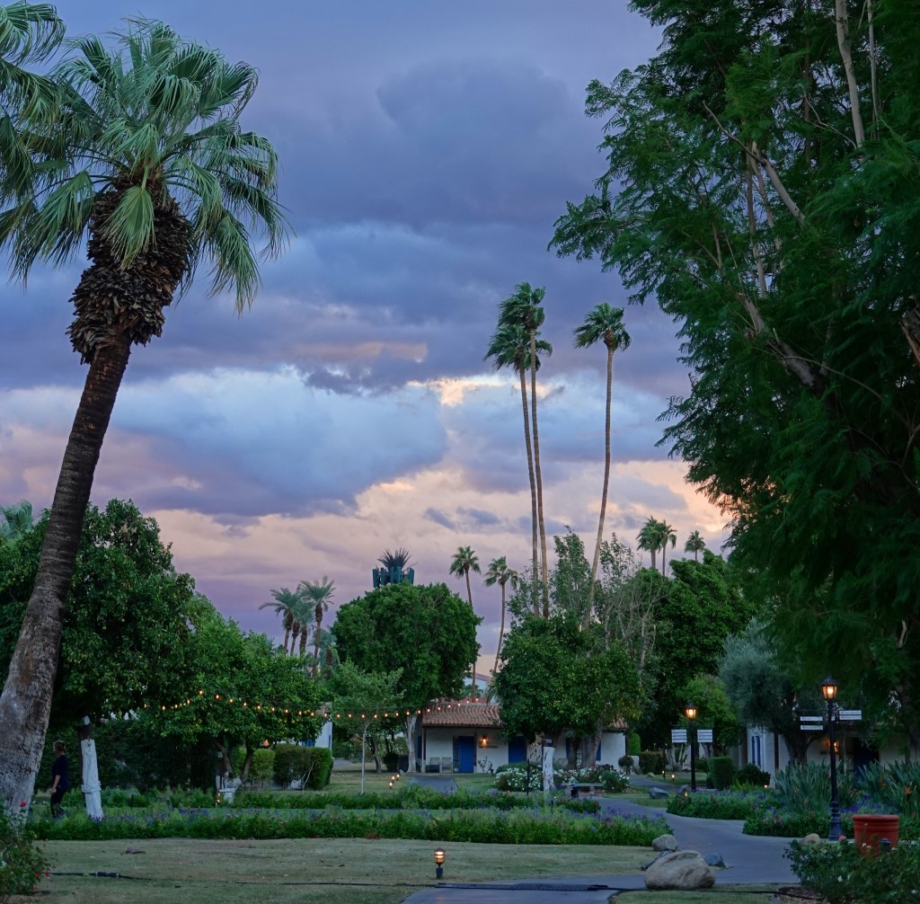 as well as plants, palms and flowers, all in the midst of the baking hot desert.