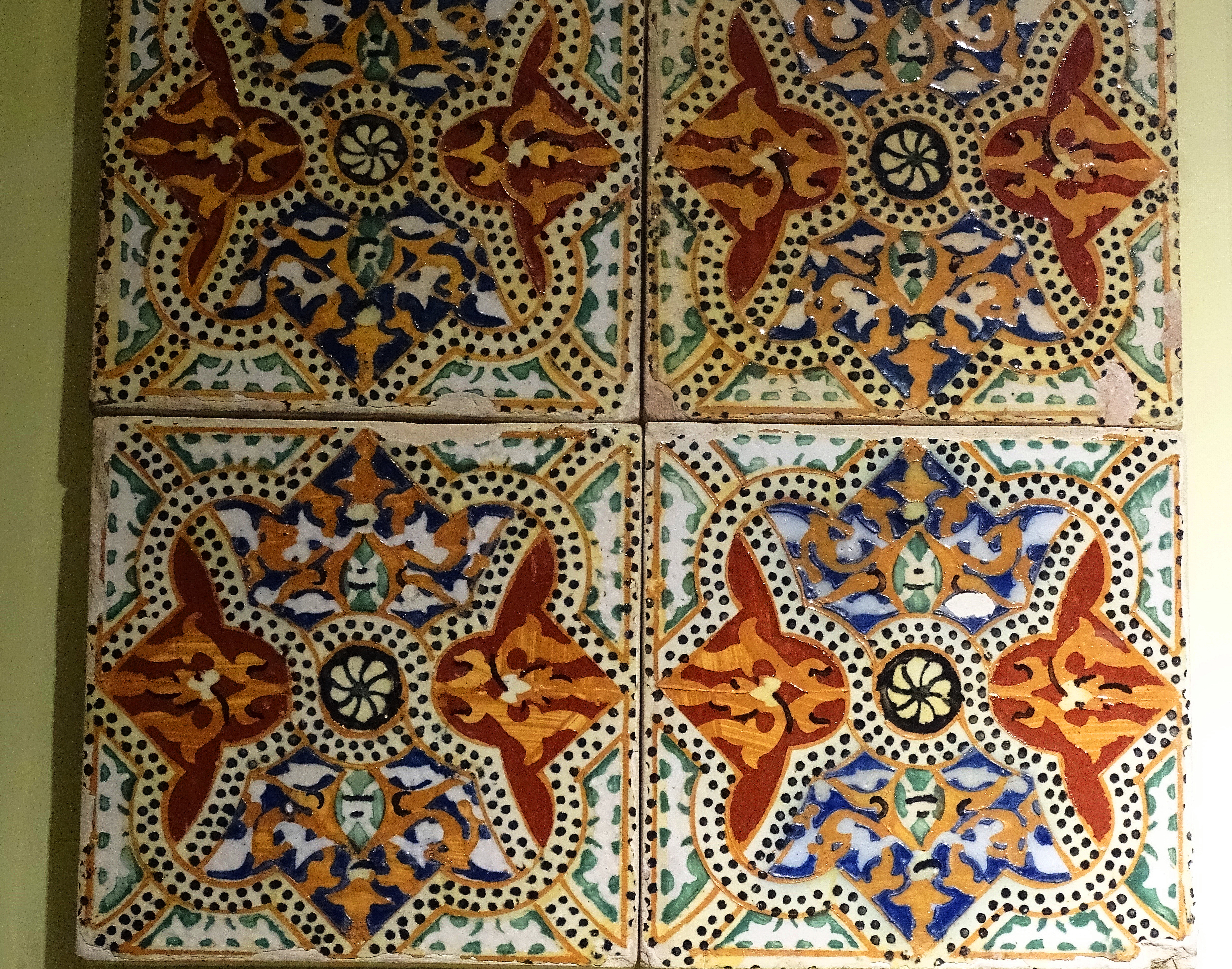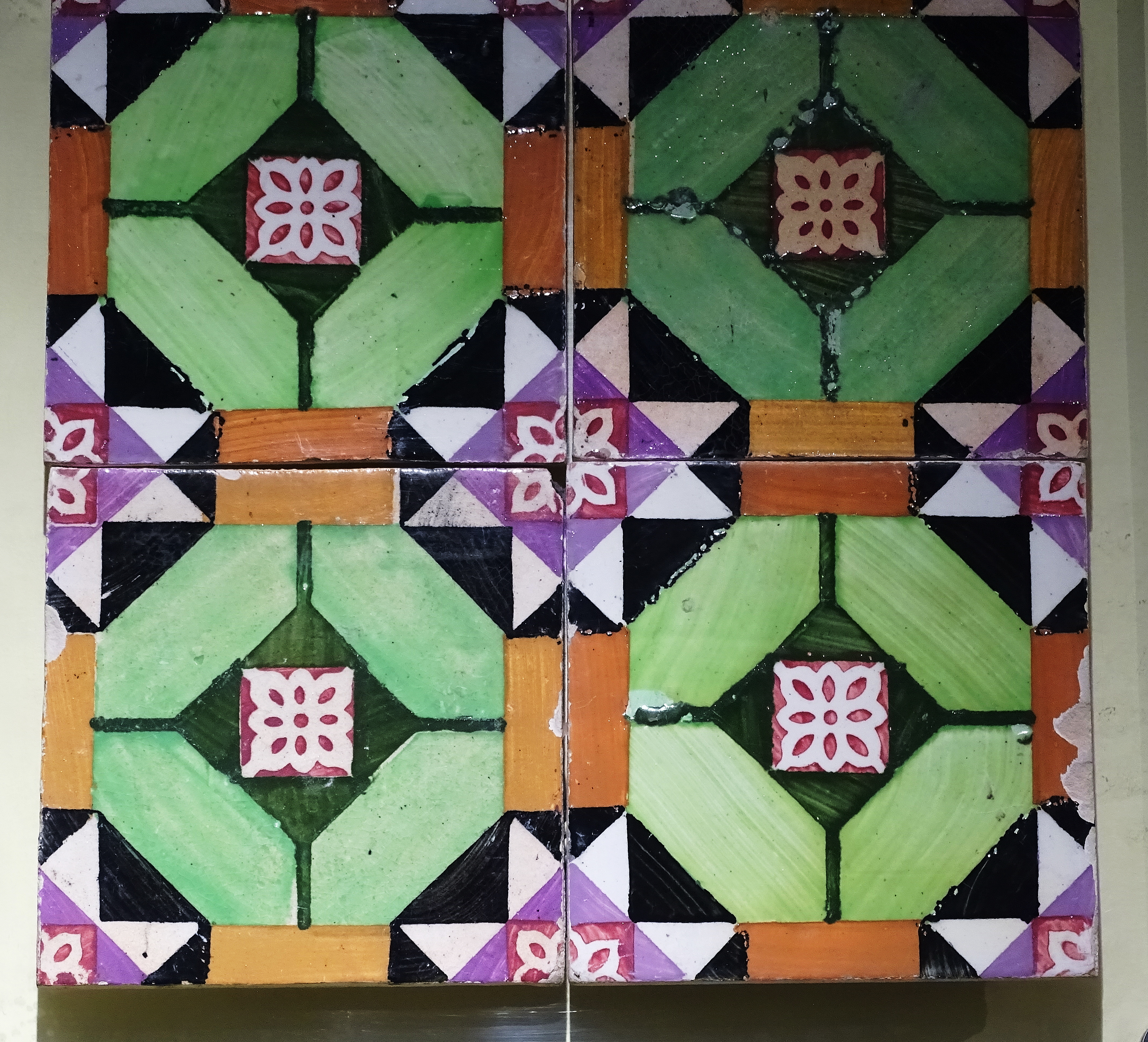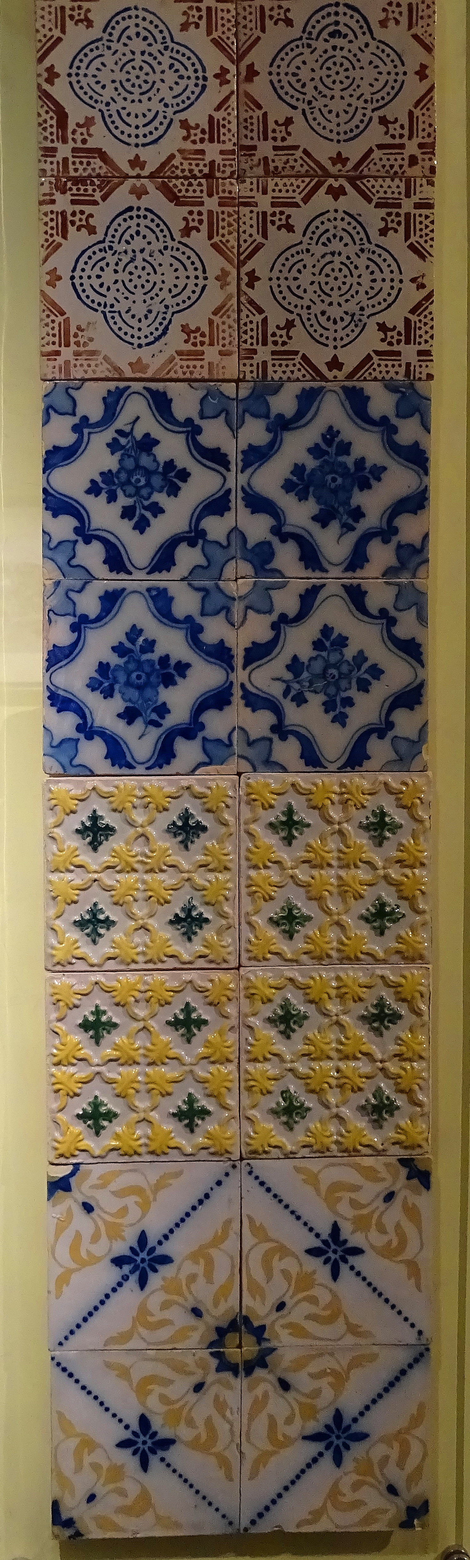 Purple and green were added next, along with geometric designs. (See Azulejos II for more of these multi-colored tiles.)