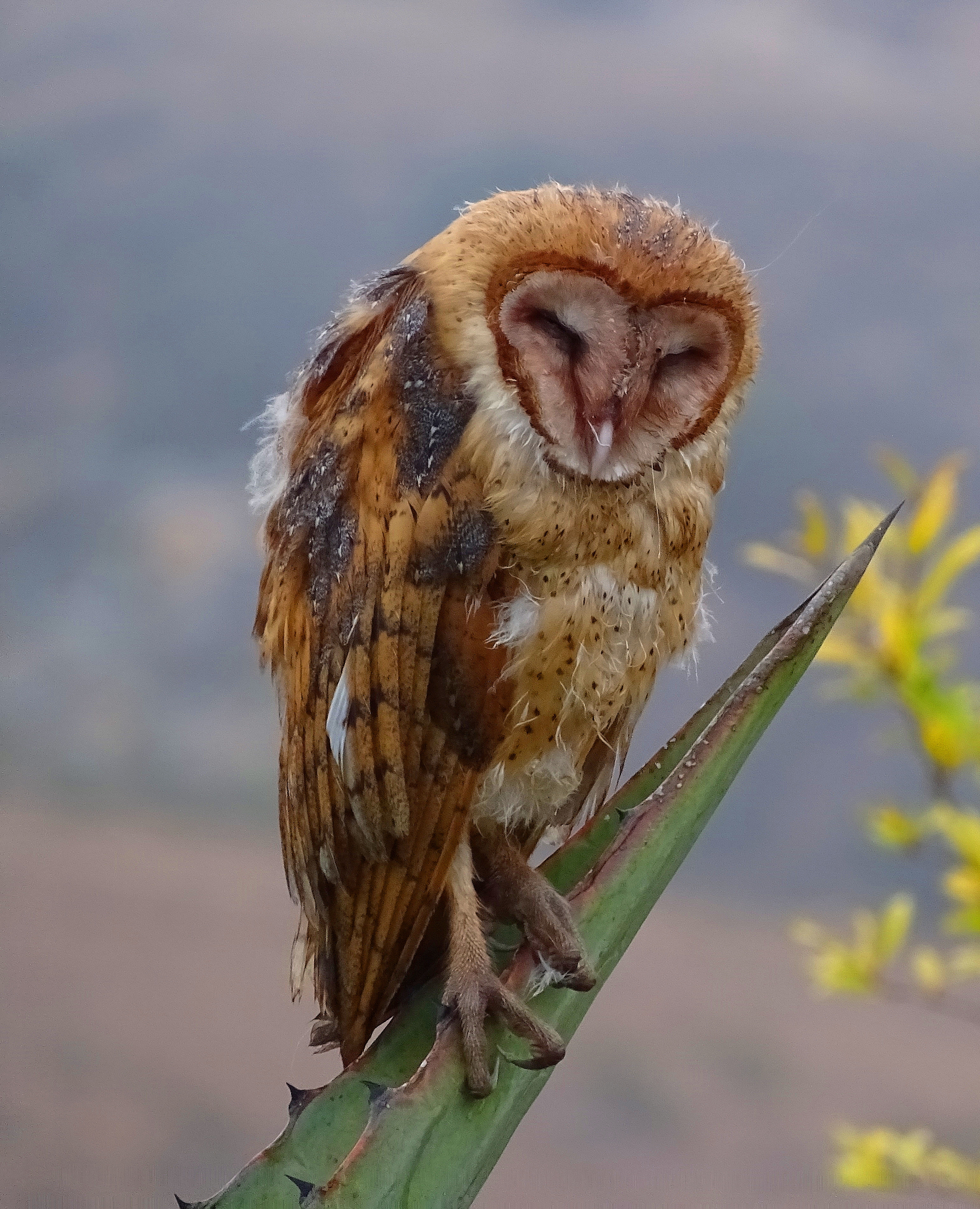 Sleepy owlet Valentine wears his heart on his face. (Click to enlarge and see Valentine better).