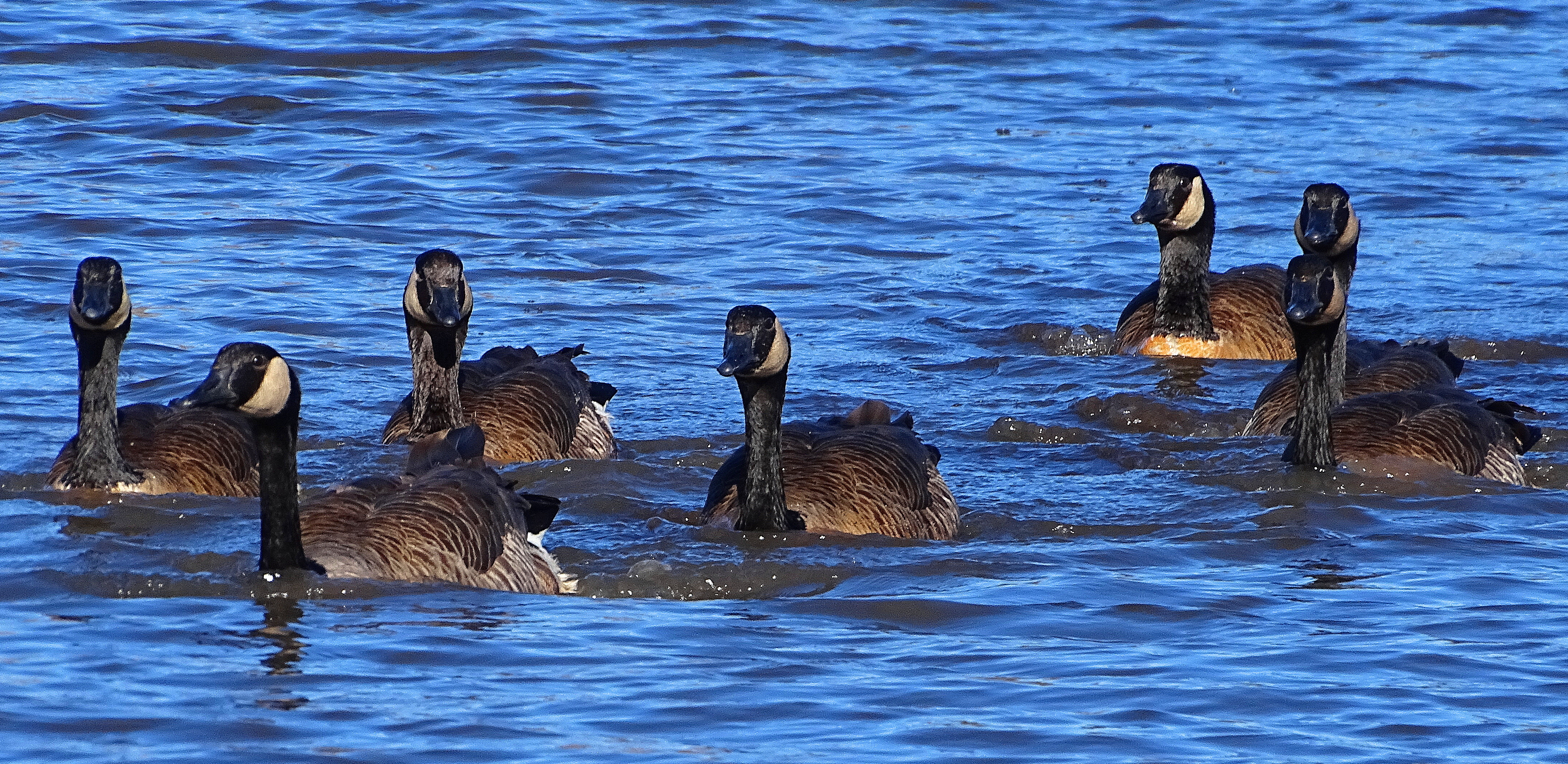 I also rarely see Canadians squabble amongst each other, but these guys certainly do! We were hanging out with a congenial group of happy gooseys, when all of a sudden, an invading nautical army launched themselves across the lake, to drive the peaceful gooseys away!