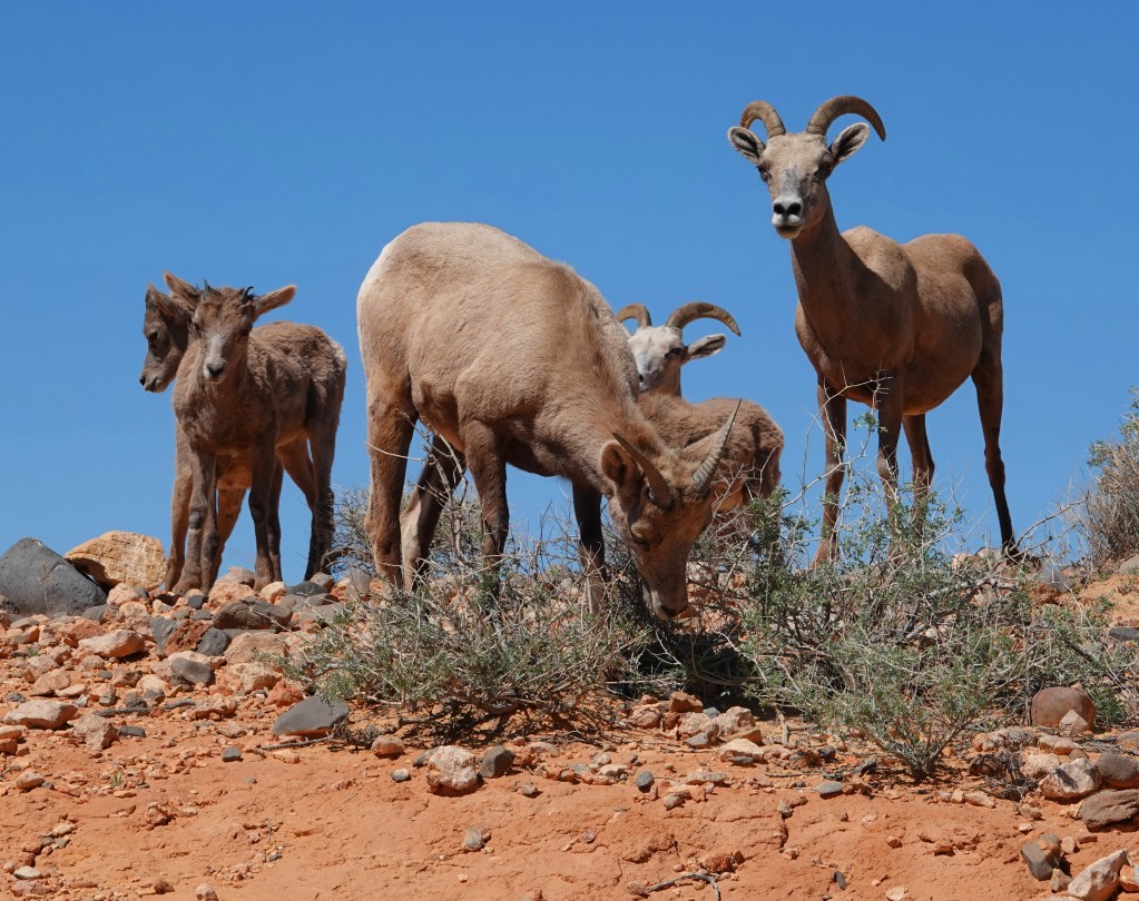 Note: Desert Bighorn Sheep are a sub-species of Big Horn Sheep adapted to desert life. They are a federally designated endangered species.
