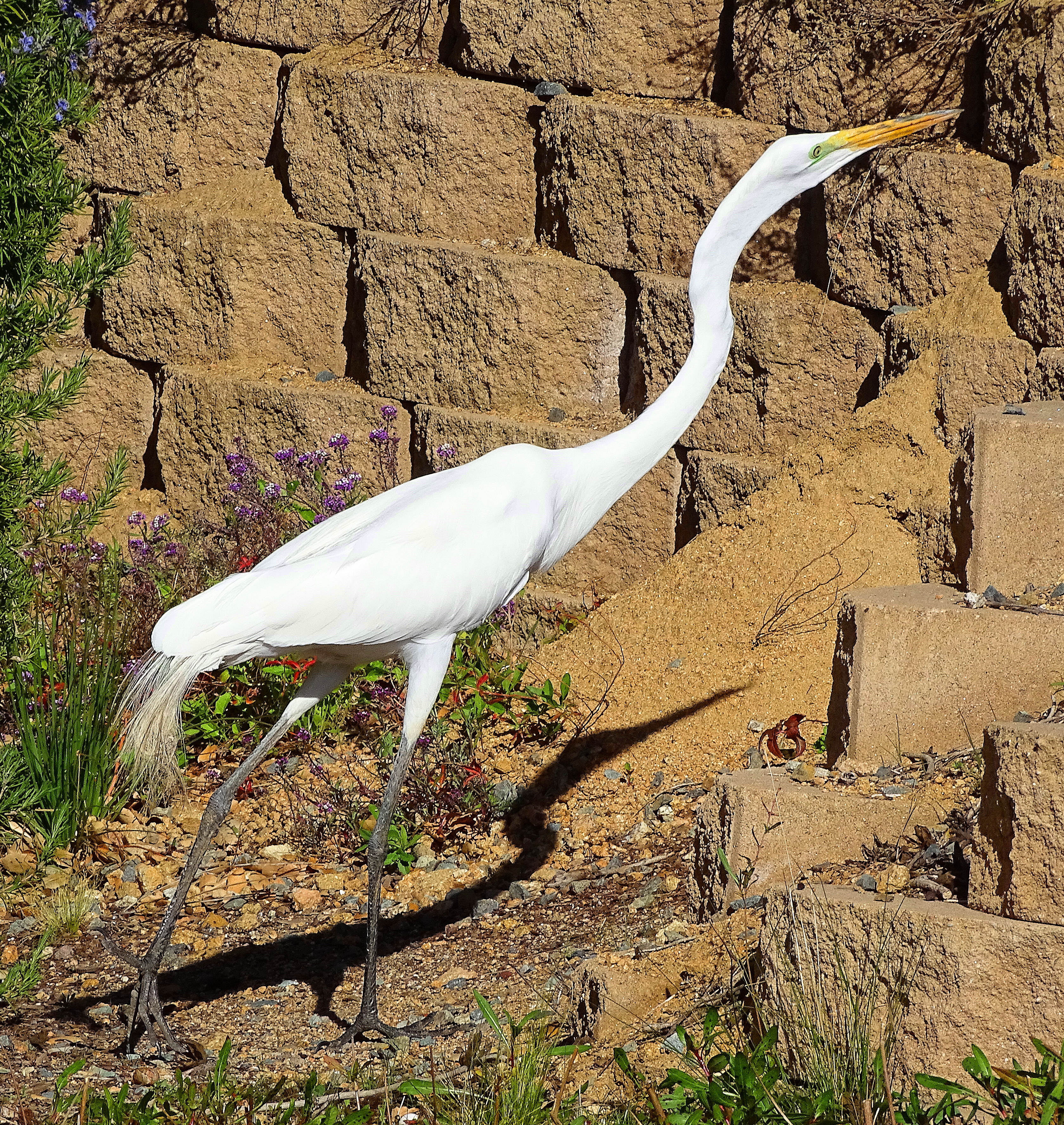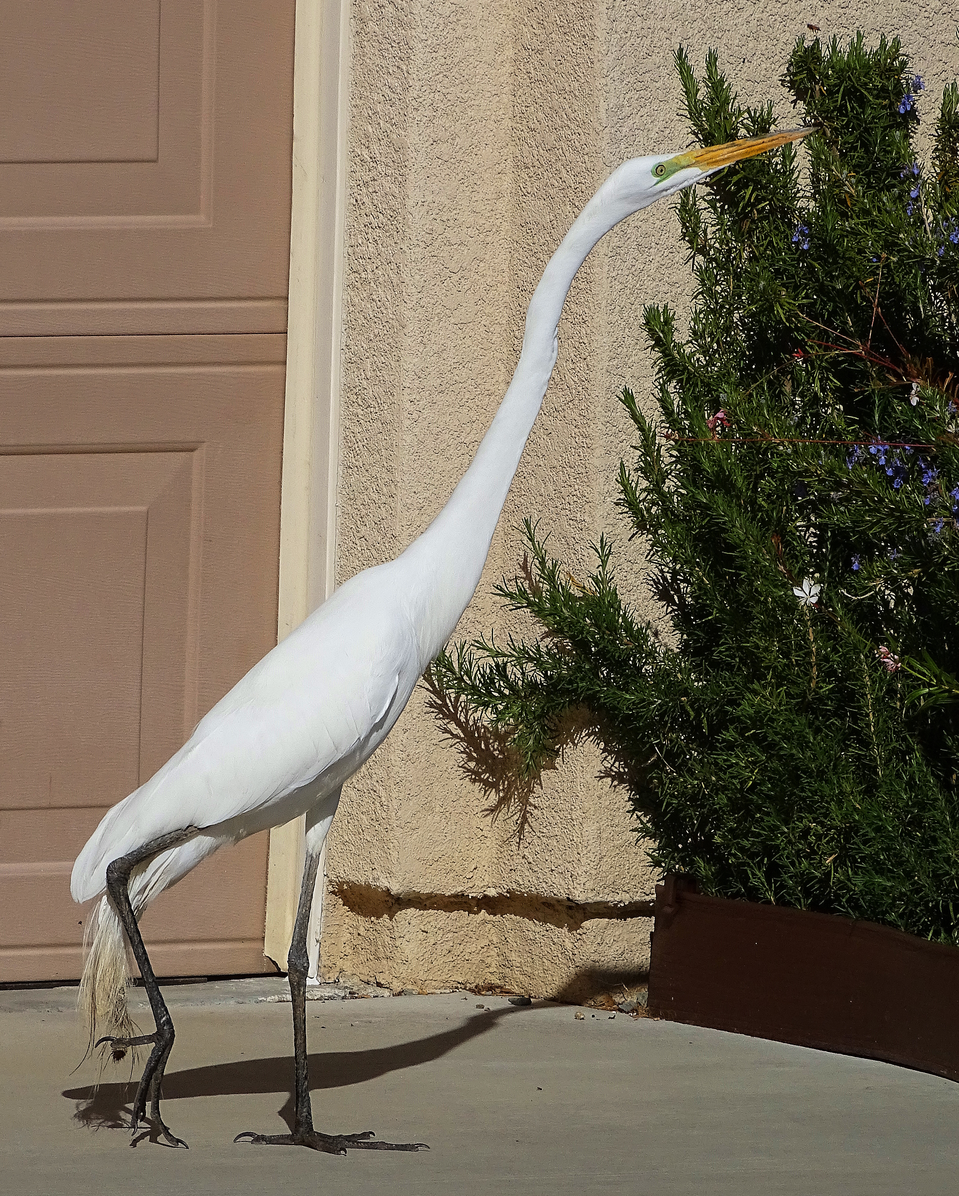 Note: This bird is a Great Egret a member of the heron family who stands over 3′ tall.