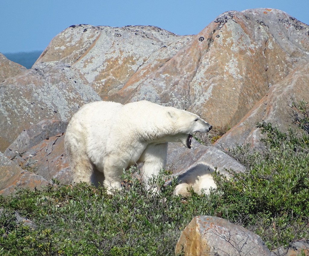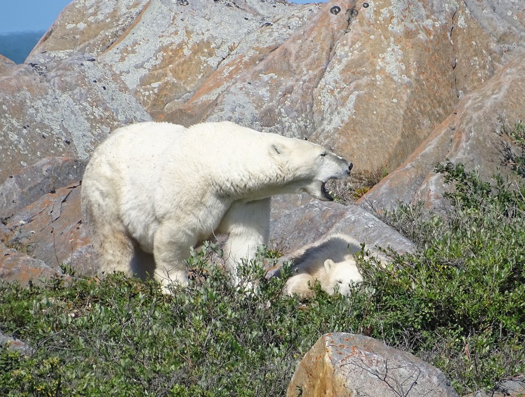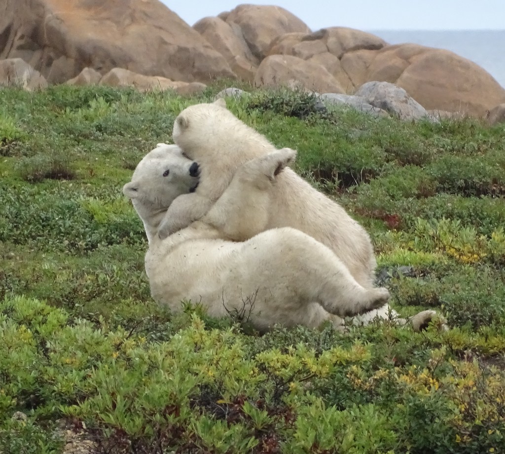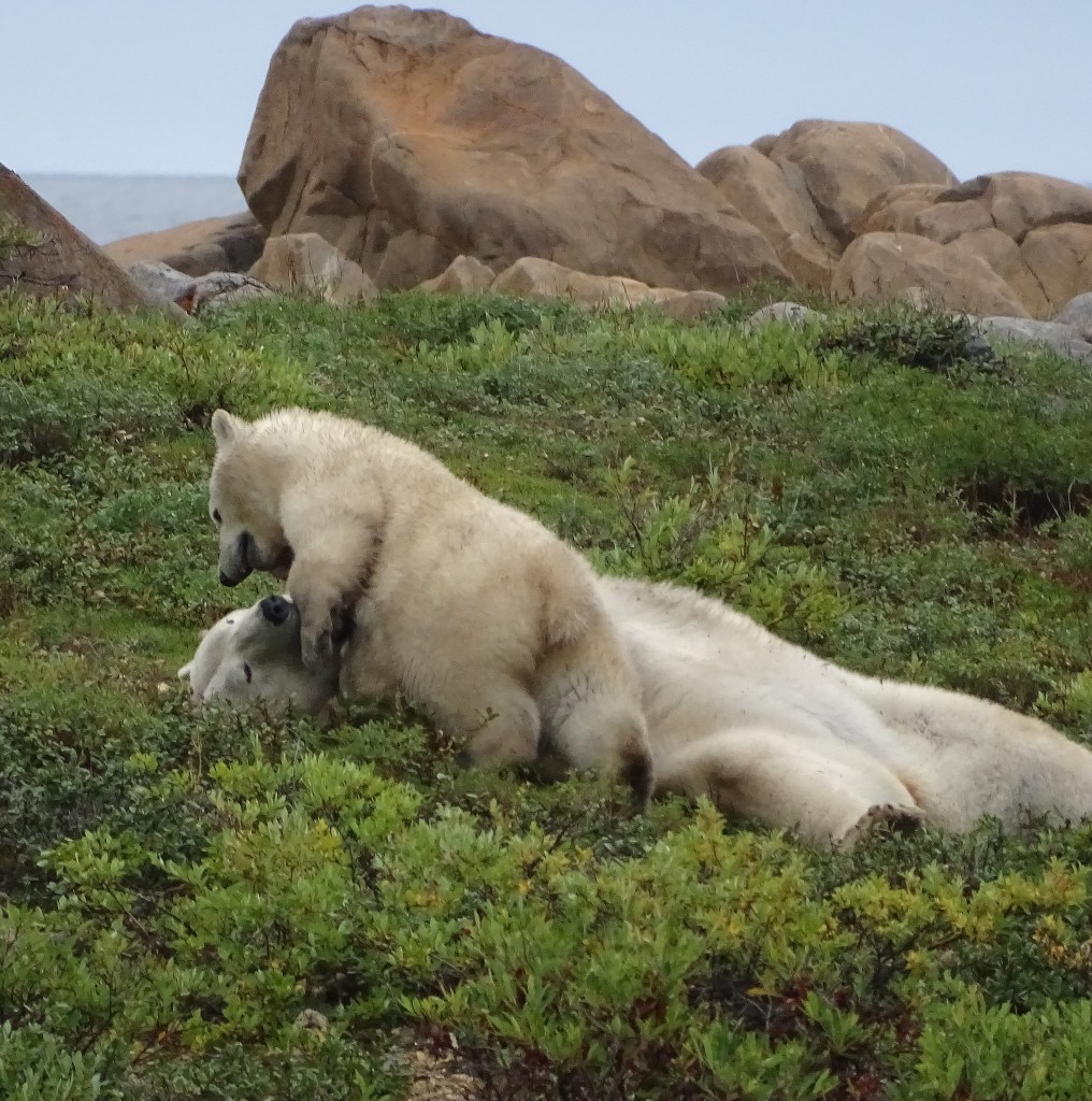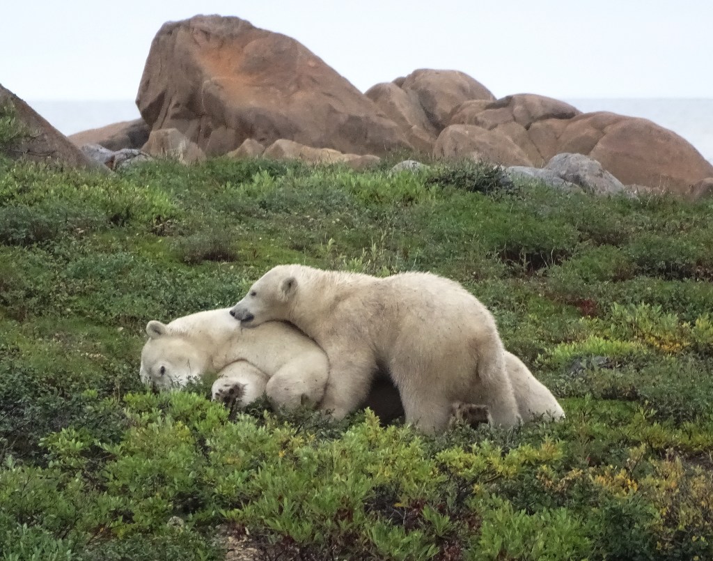 This is what we saw polar bears doing, as they wait for the ice to freeze, so they can go hunt seals on Hudson Bay. Works for me. I love doing all of these things!