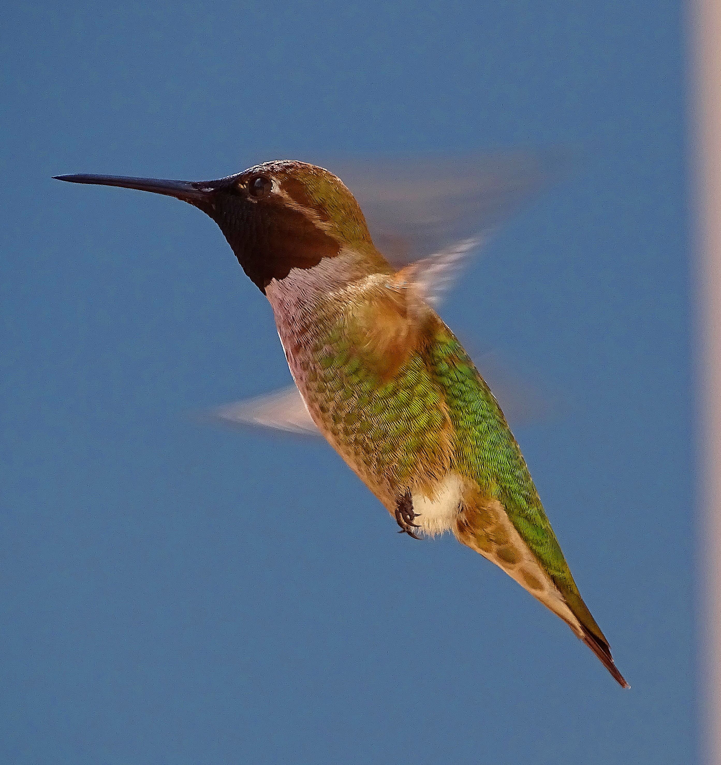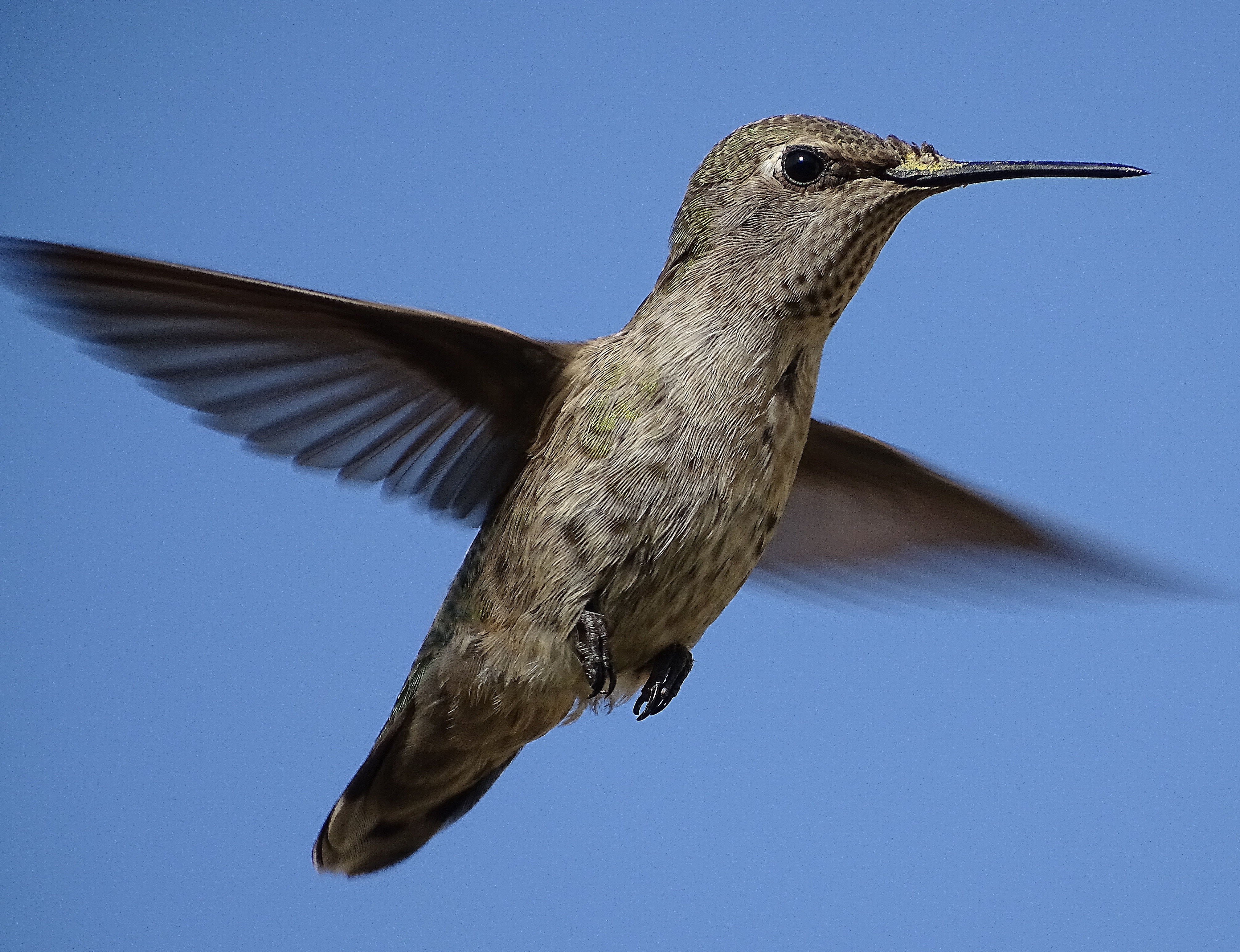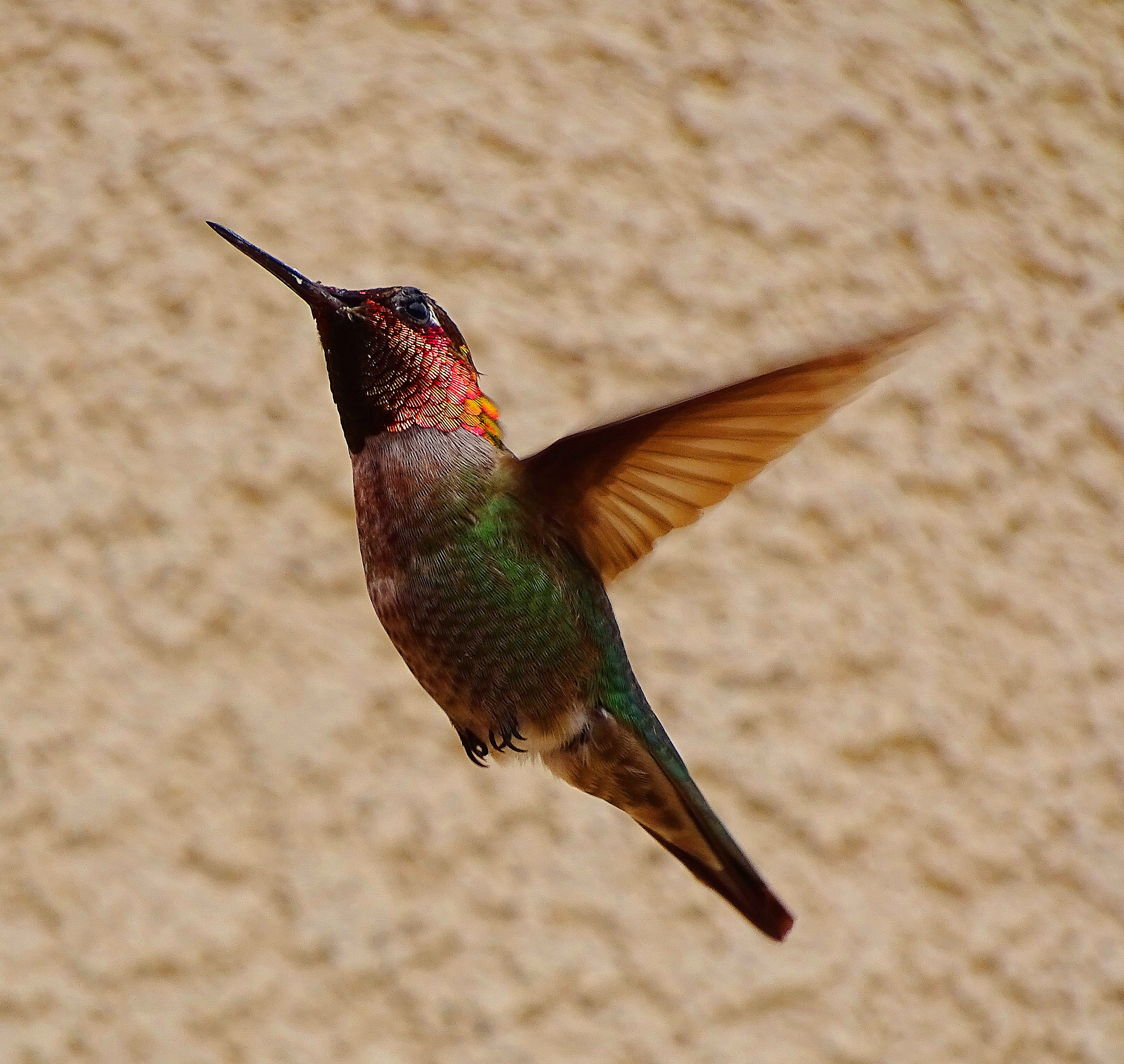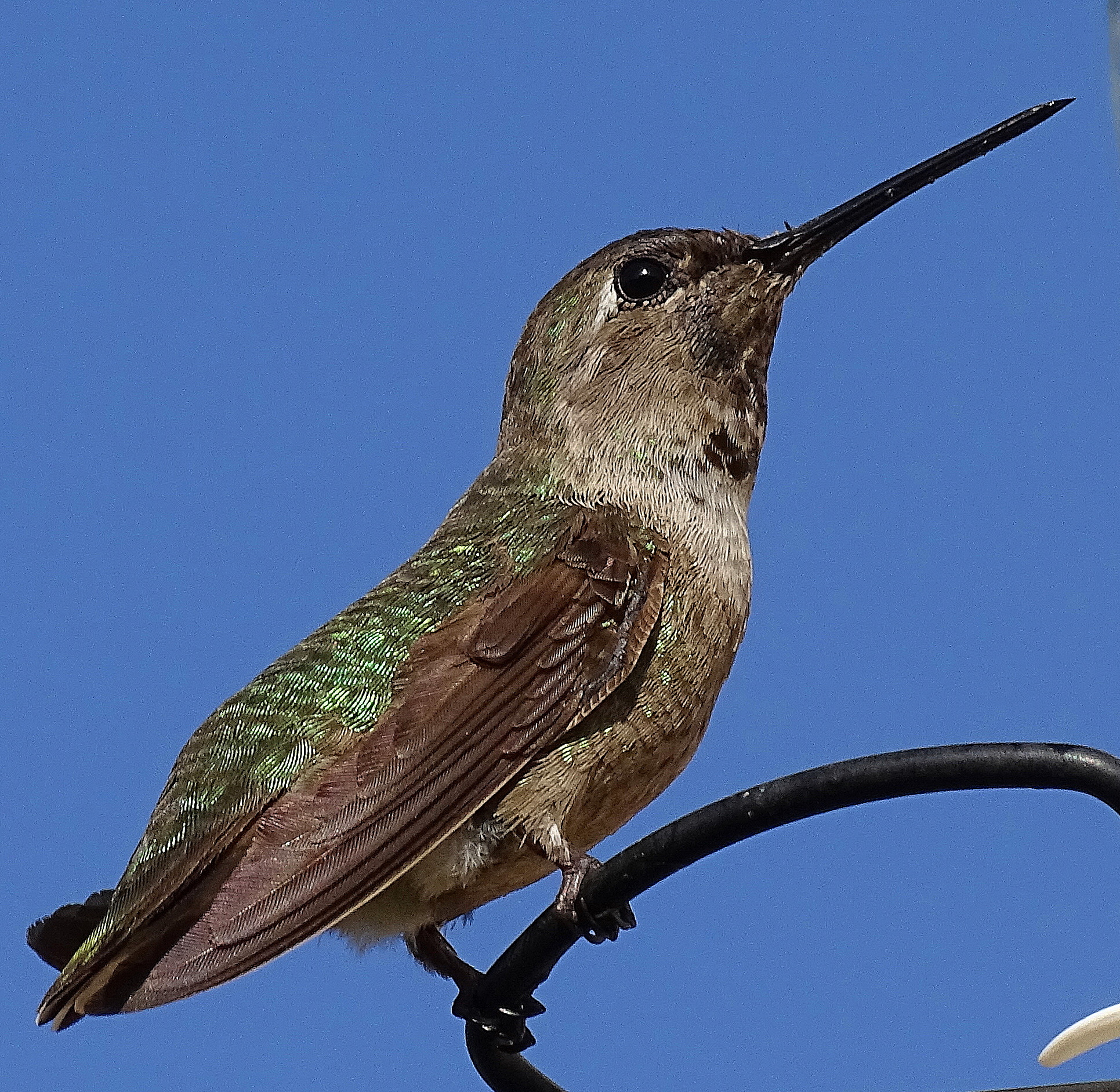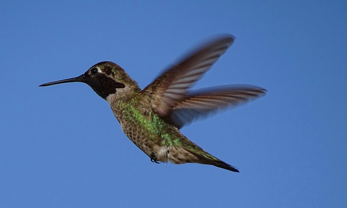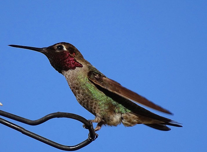 We now have three feeders up and about twenty birds actively feeding. This is less than prior years, probably because the persistent drought has ended, and The Holler and all the surrounding orchards are abloom with flowers, giving the hummers lots of dining options.