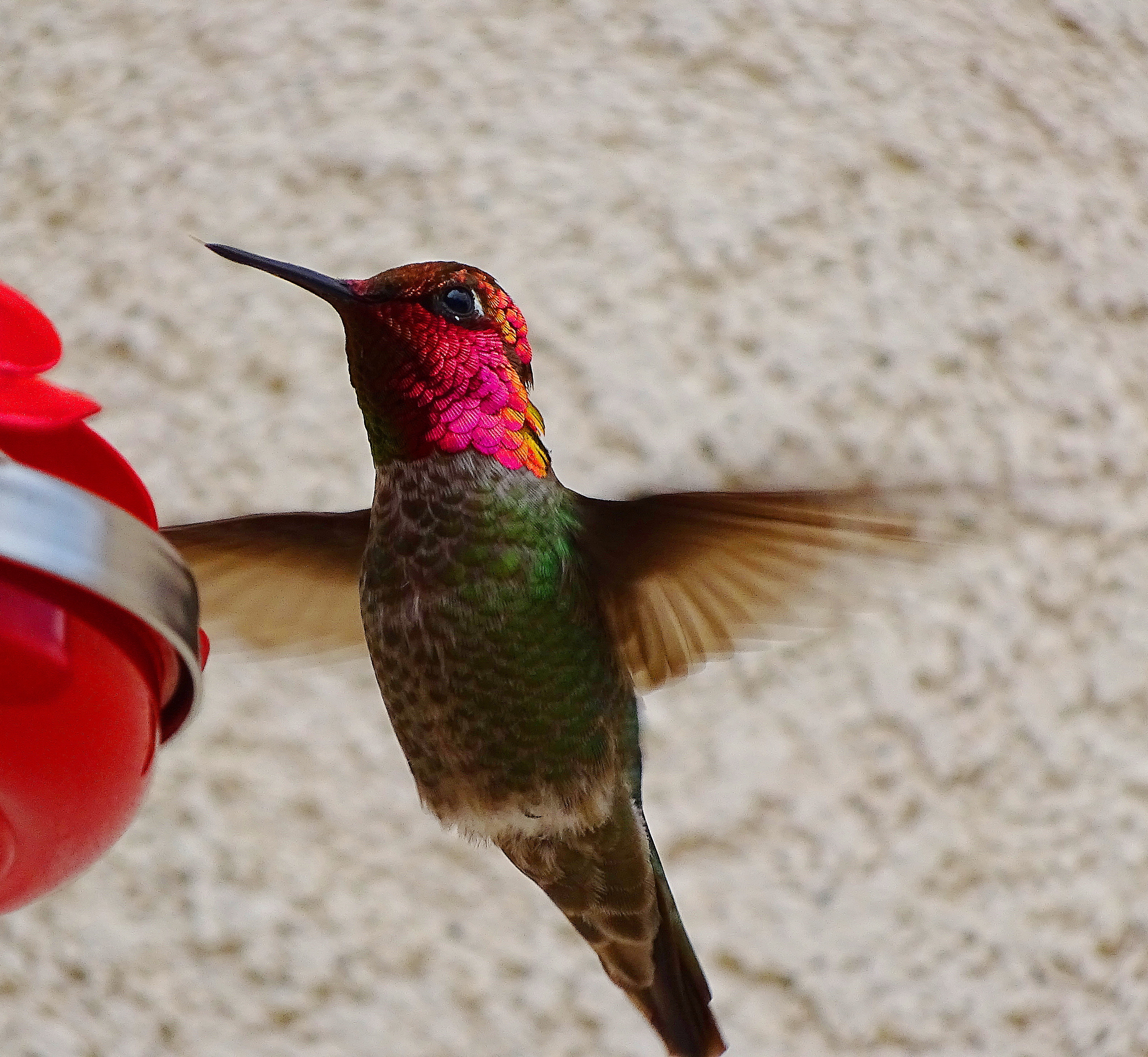The good news is, moving one of the greedy guy’s feeders into the bushes worked, and he is now under control.