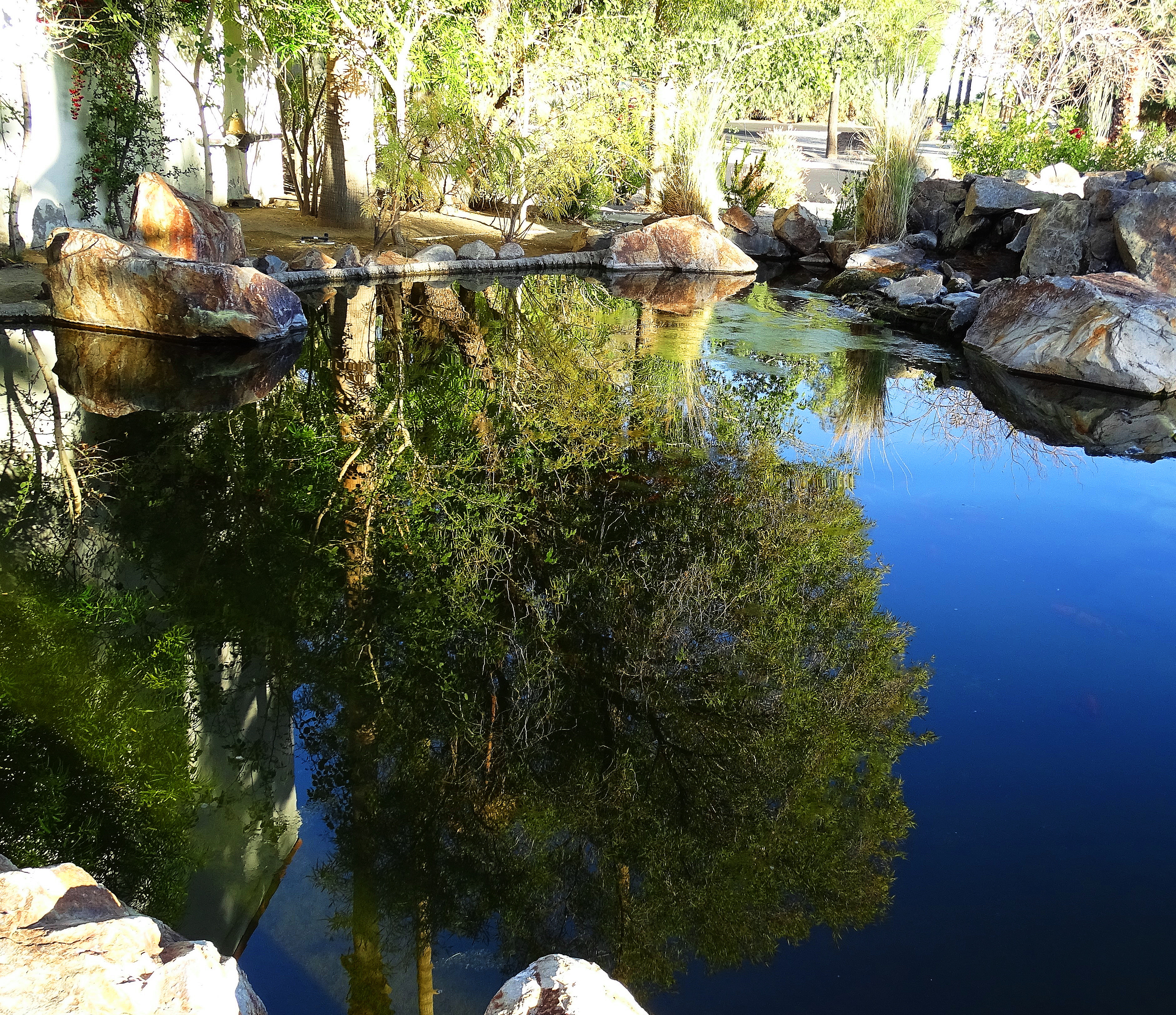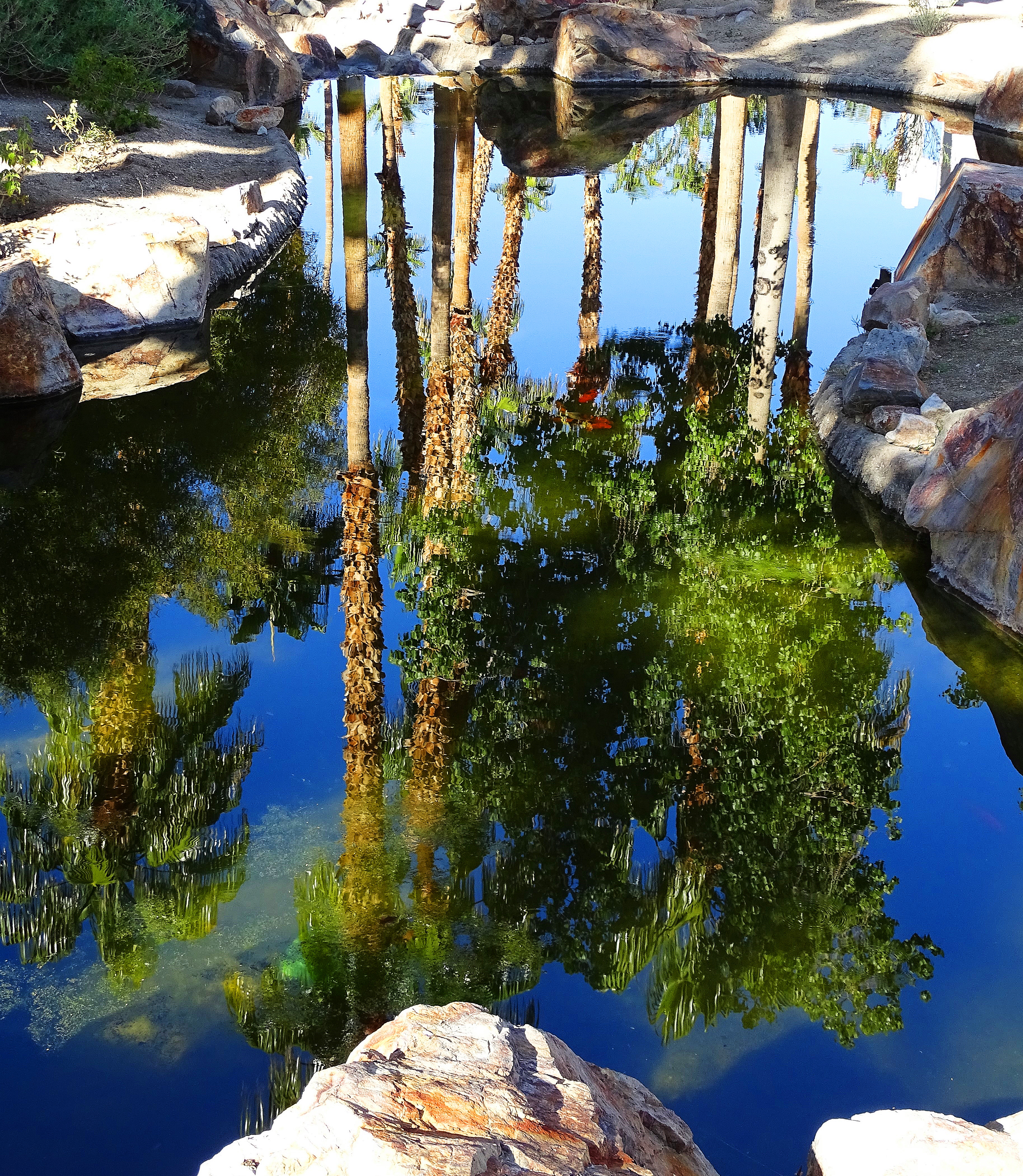 Note: There are Golden Carp swimming in the gardens, but I photographed the Koi in San Diego and added them, feeling they fit in nicely with the landscape ambience.