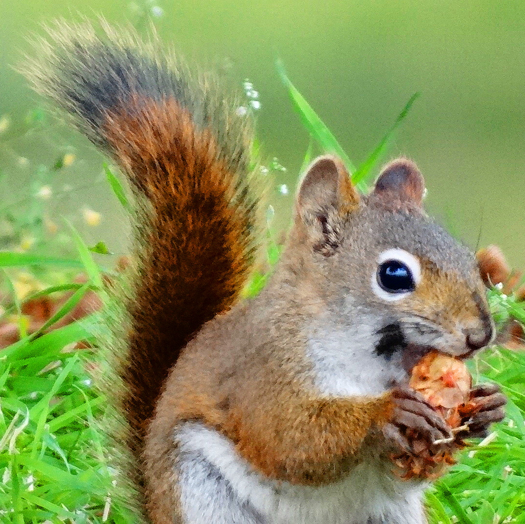 This particular guy has amassed a pile of pine cones 12″ x 12″ round and at least as high! He’s not going hungry this winter!