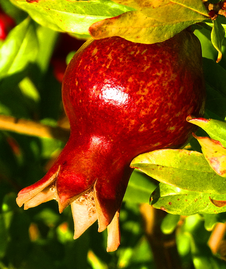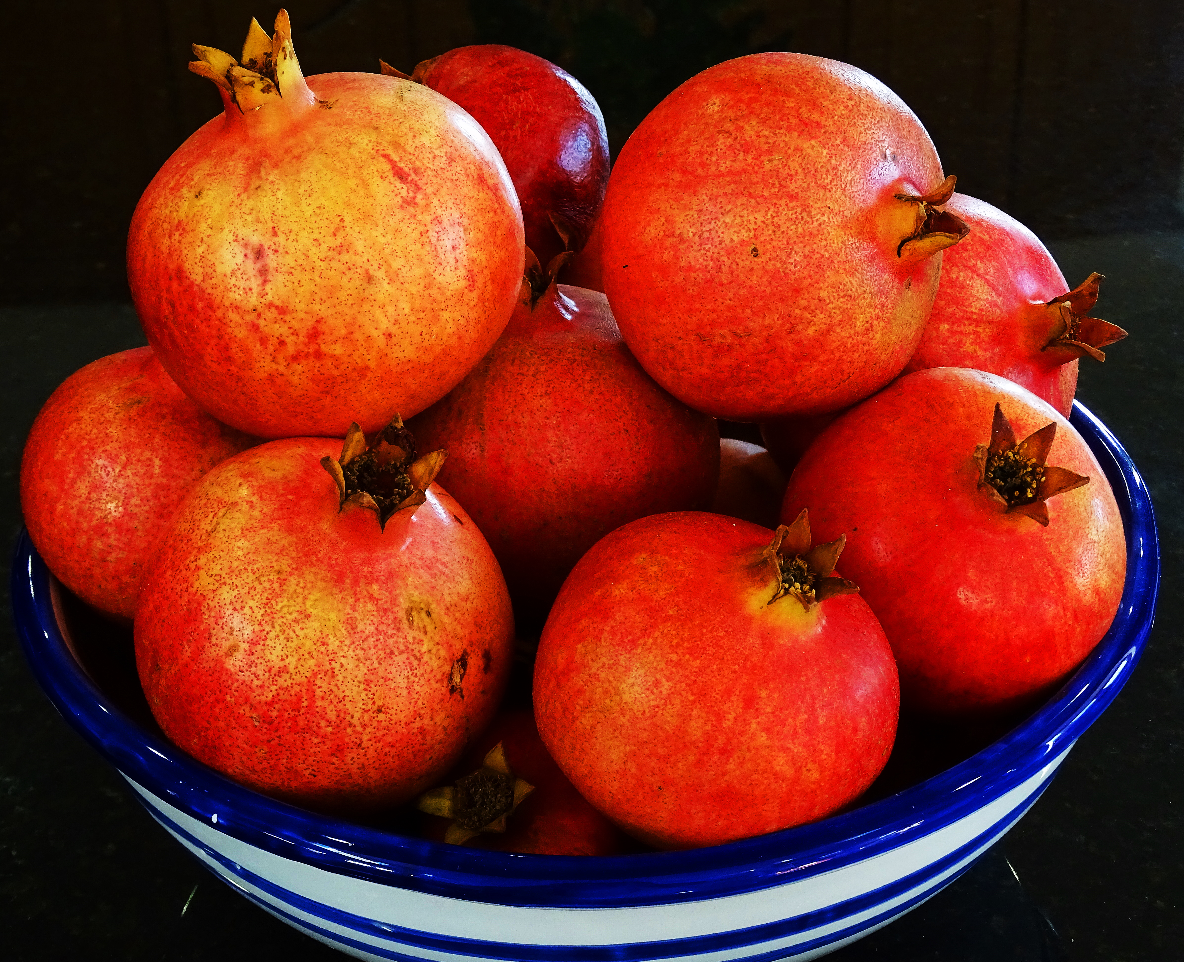 I’d even include recipes. Necessity is the mother of invention, and I have learned to make pomegranate jelly, juice, ice cream, cakes, cookies, and smoothies. I use the seeds in salads, on fish, with Asian food, with goat cheese. The list goes on and on. Of course it is wonderful, just picked from the tree, cracked in half and eaten, with the juice running down your neck!