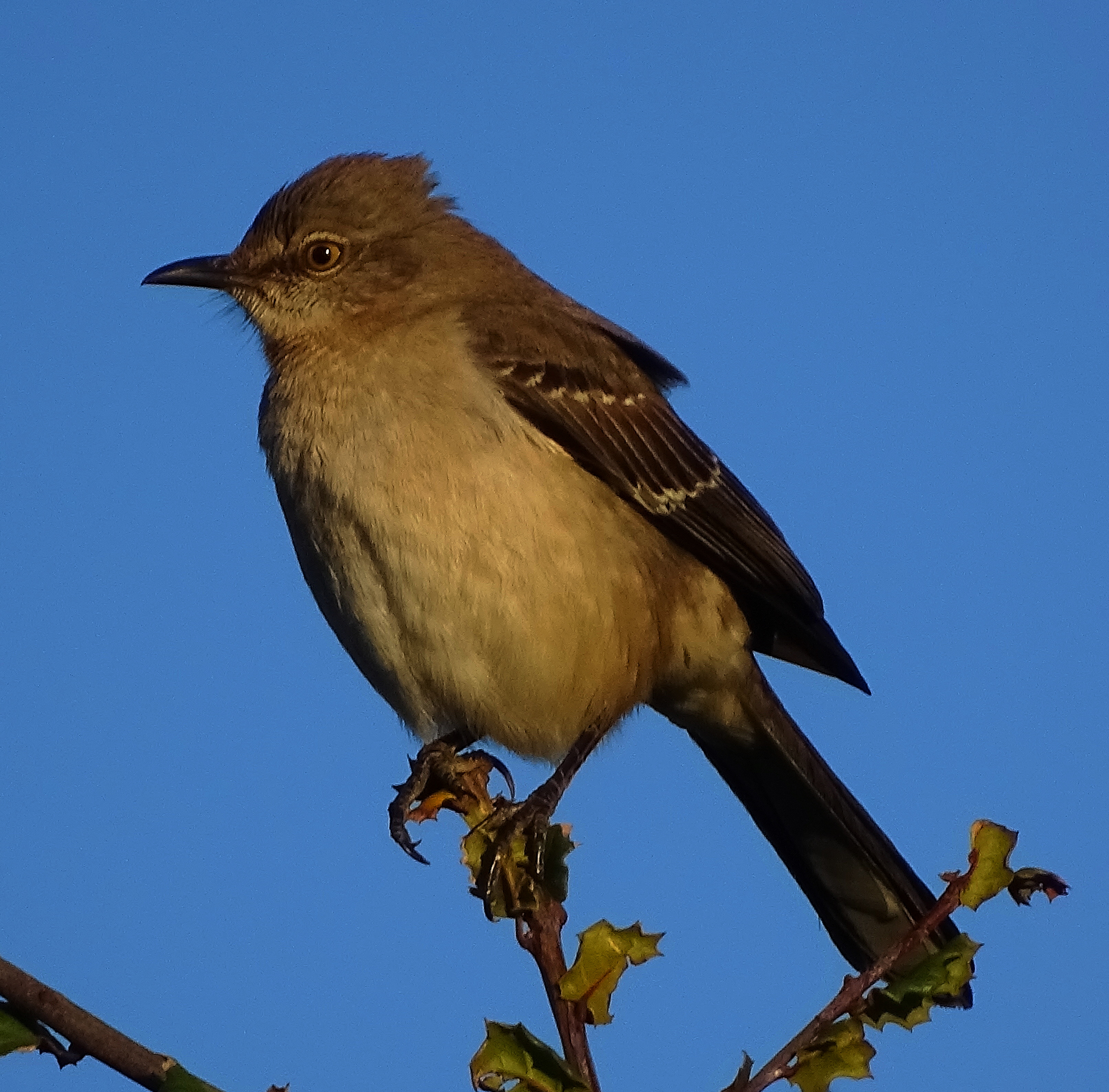 The mocking bird was in modeling mode, although still a very coy boy.