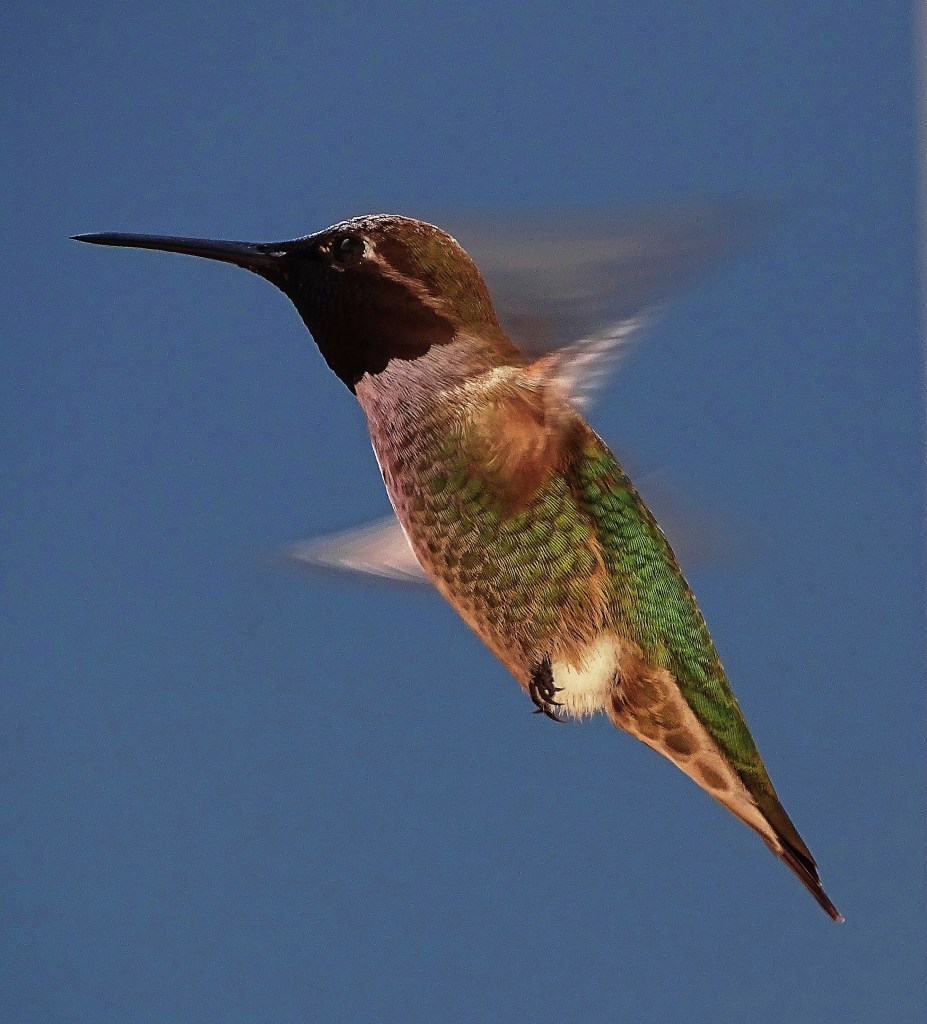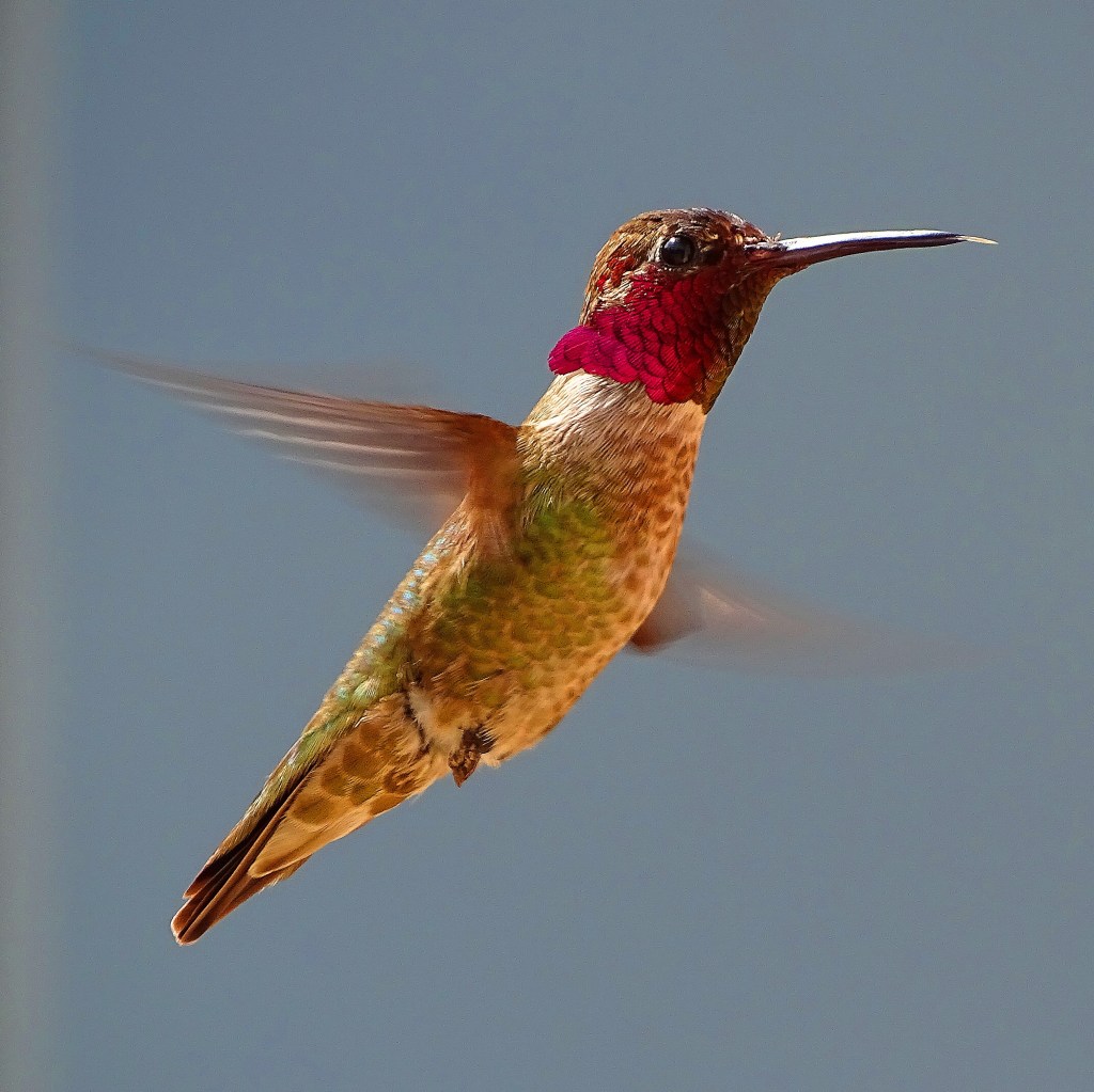 Hummingbirds are the smallest birds in the world. Anna’s weigh about .14 ounce, but they can fly at speeds of up to 60 mph.
