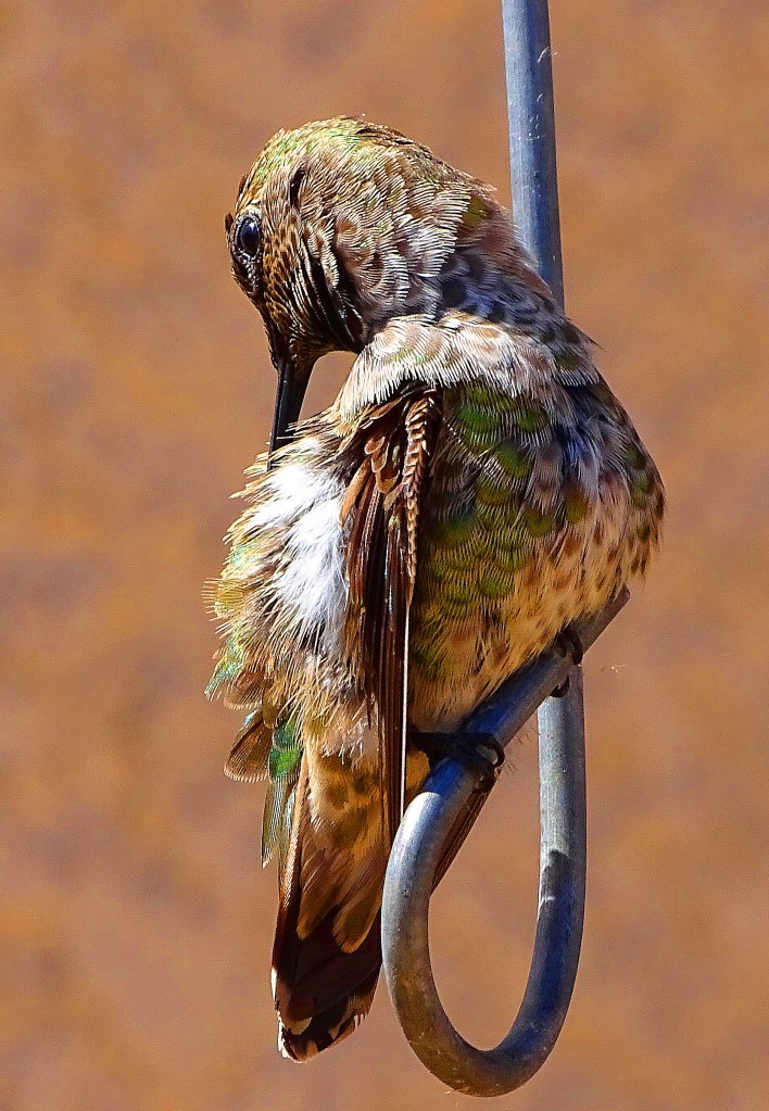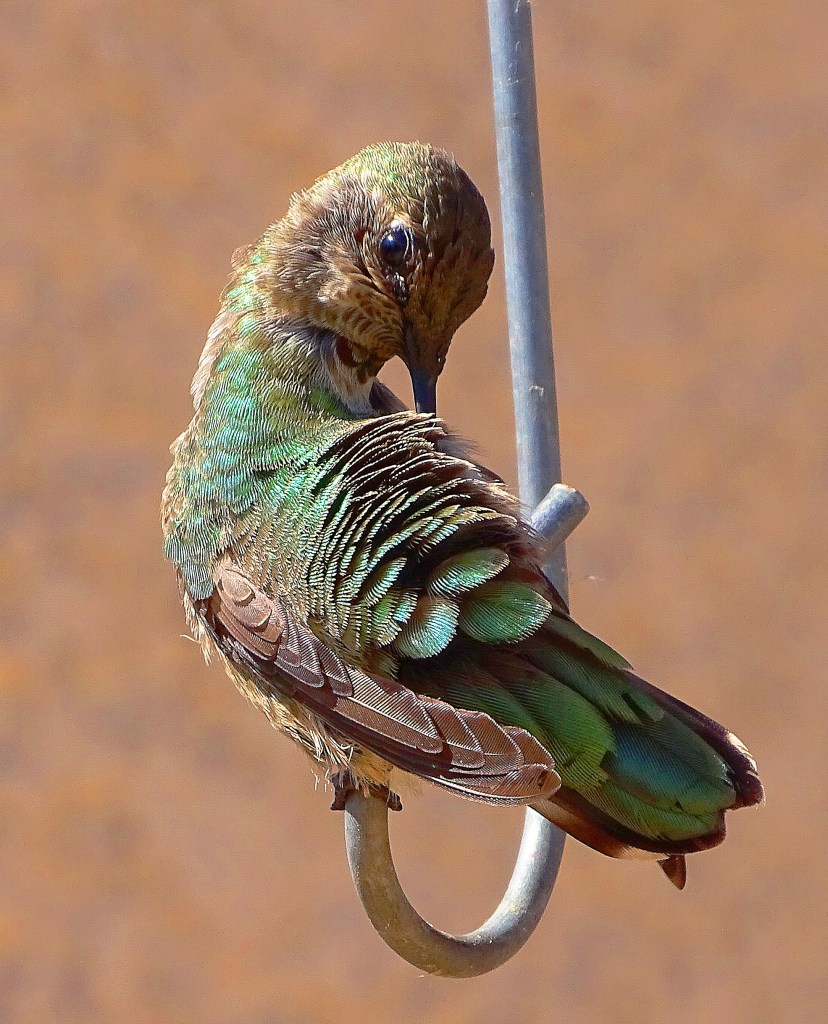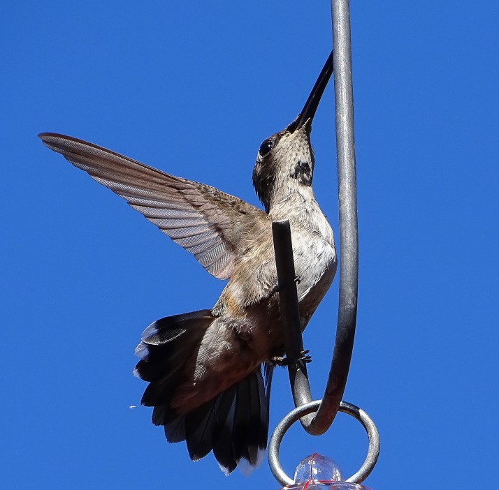 Despite their petite size, hummingbirds have mega-brains. Their brains constitute 4.2% of their body weight, greater than any other bird, and greater than human beings whose brains are about 2% of their body mass. Hummers remember how to fly thousands of miles, they know and remember which humans can be counted on to feed them, and they remember which flowers have the best nectar.