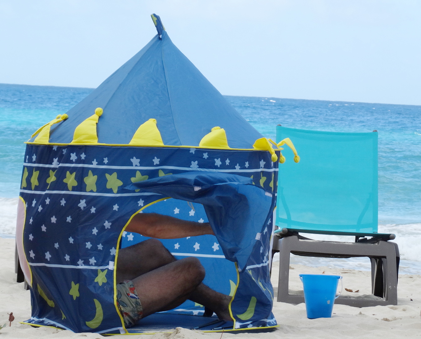 I know it is important to stay out of the sun, but this man’s castle seemed a bit pinched. Still, a man’s beach-castle is never the less his castle and nothing to be trifled with, besides, maybe this was for his kid? I didn’t see the kid though……